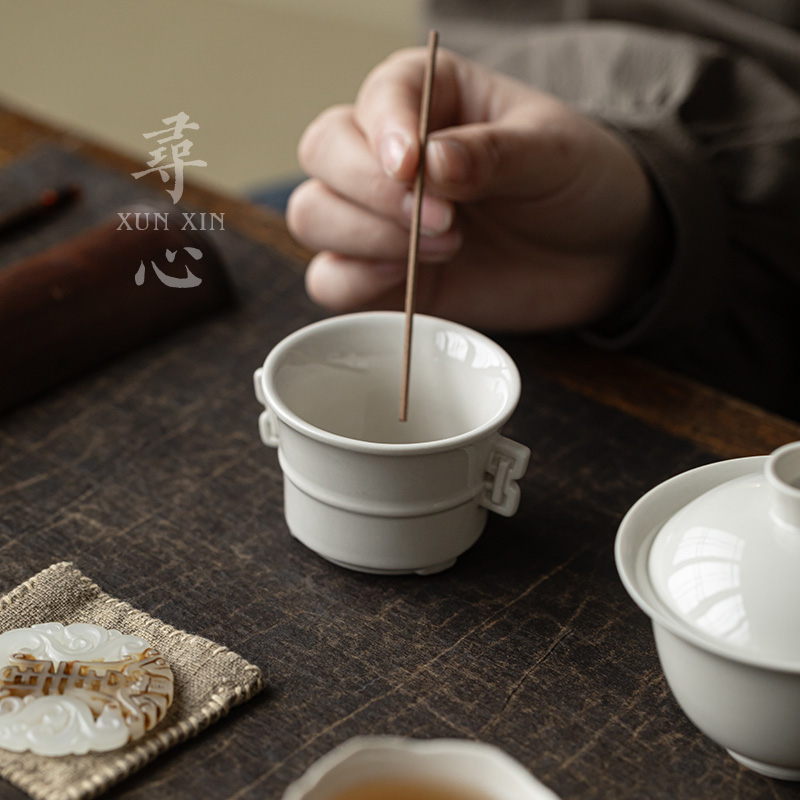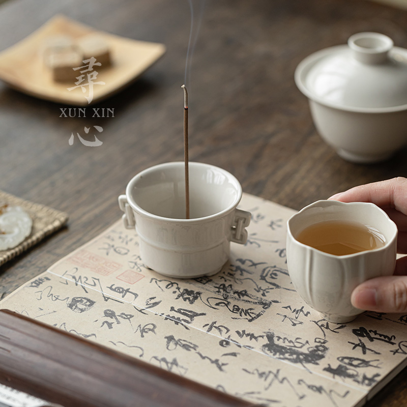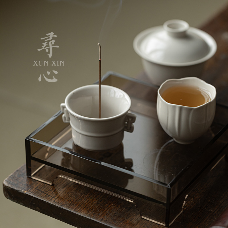 寻心草木灰釉创意小香炉茶室陶瓷家用香托盘线香插香座香薰炉摆件