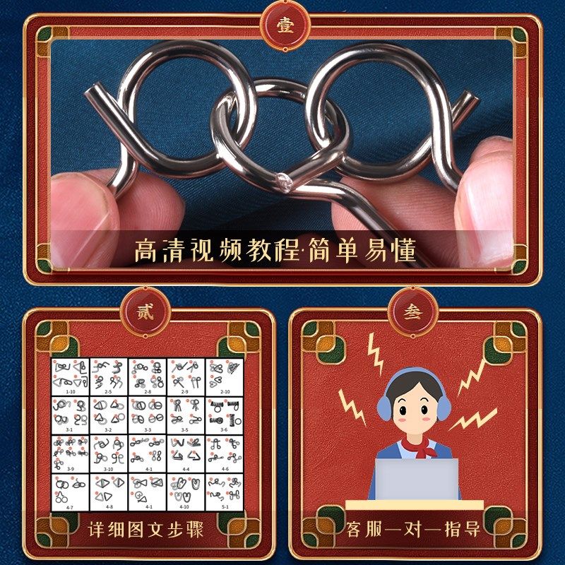 九连环智力解扣24件套不锈钢解环40小学生益智玩具鲁班锁孔明全套