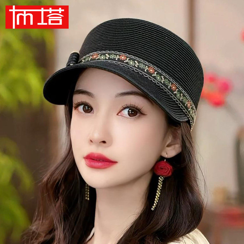 布塔夏季防晒马术帽冰丝遮阳帽钉珠出游骑士帽草帽百搭休闲帽子