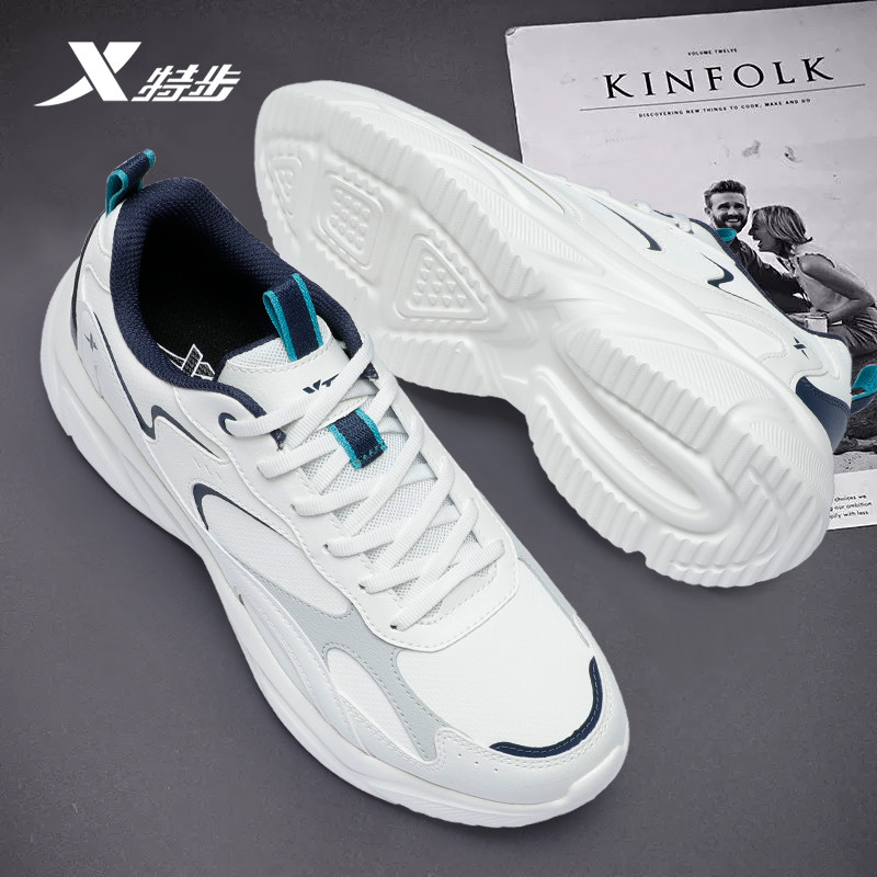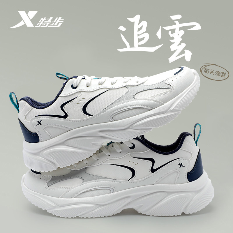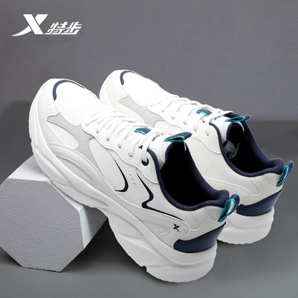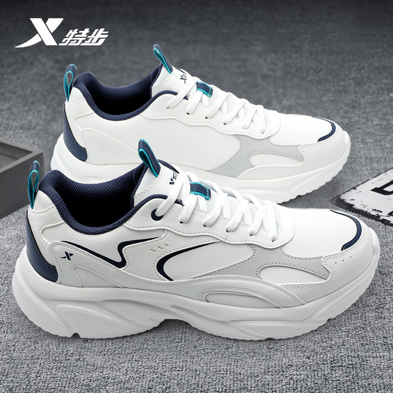 特步男鞋春季款小白鞋休闲运动鞋潮流百搭男士皮面增高学生老爹鞋