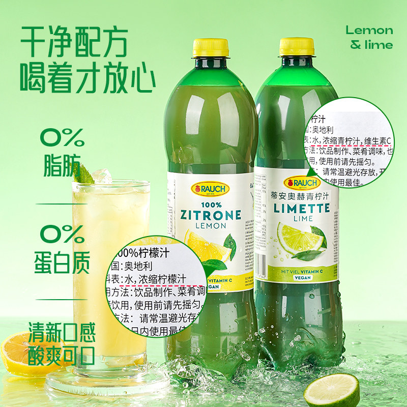 蒂安奥赫柠檬浓缩汁青柠果汁1L进口商用调酒去腥蛋糕烘焙专用调料
