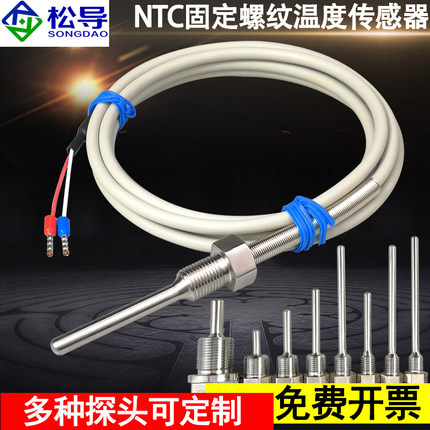 不锈钢防水固定螺纹NTC5K/10K/50K热敏电阻温度传感器优质PVC线缆