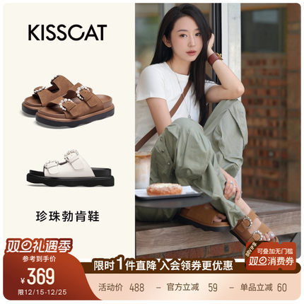 KISSCAT接吻猫高级时尚懒人凉拖厚底珍珠勃肯拖鞋女夏外穿不累脚
