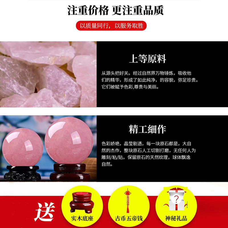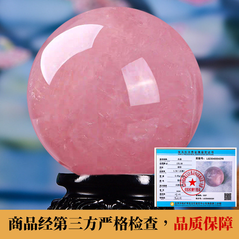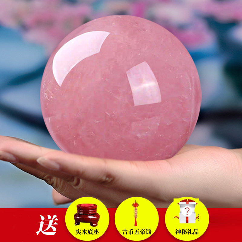 天然粉色水晶球摆件招桃花旺姻缘爱情芙蓉真原石轻奢家居办公送礼
