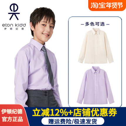 【伊顿纪德&Trutex联名款】学院男童春秋紫色长袖衬衫中小学衬衣