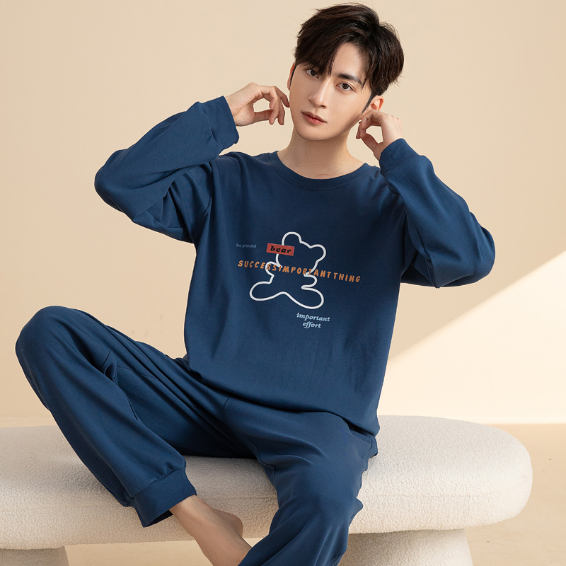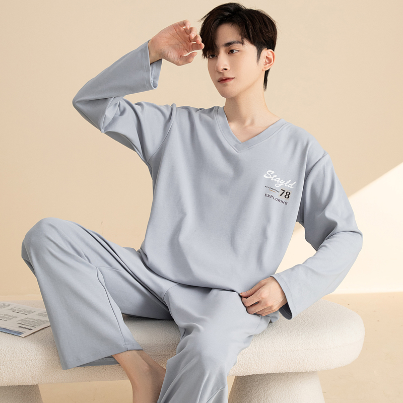 男士睡衣春秋款纯棉长袖套装秋冬季大码爸爸宽松可外穿男款家居服