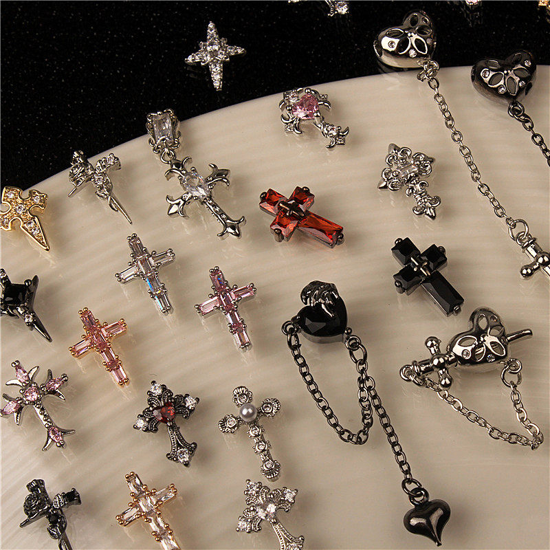 网红十字架美甲饰品复古朋克