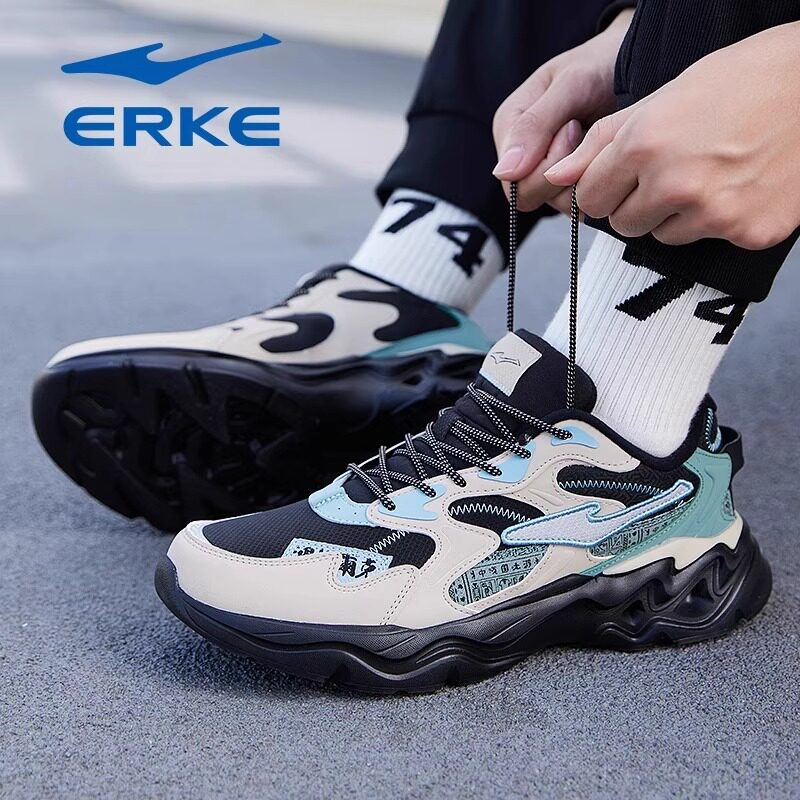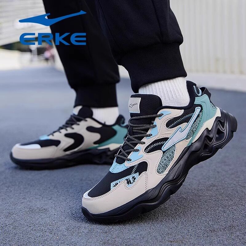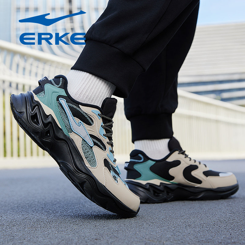 鸿星尔克官方旗舰男鞋2026春秋季新款运动鞋男防水皮面老爹鞋子