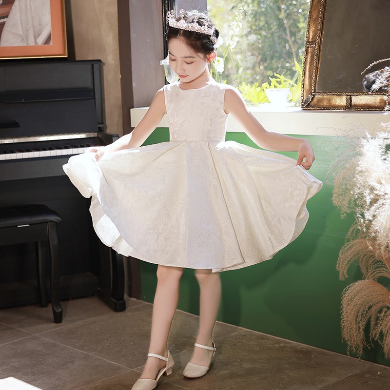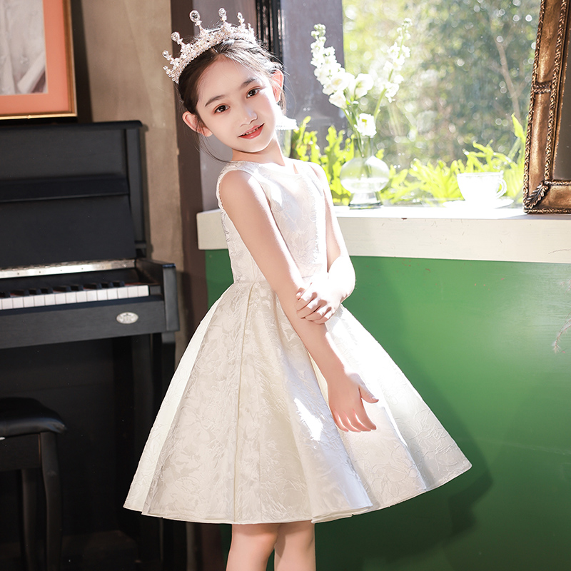 女童生日宴公主裙白色轻奢花童婚礼小女孩礼服儿童钢琴演出服夏季