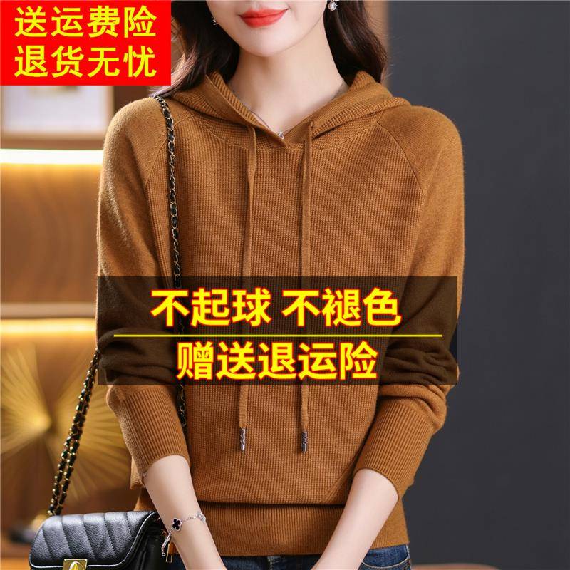 鄂尔多斯市羊绒衫女连帽针织衫2023新款妈妈套头卫衣羊毛打底毛衣