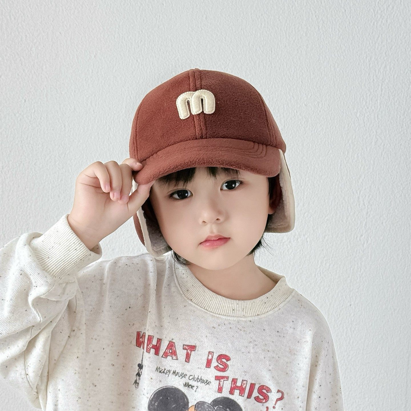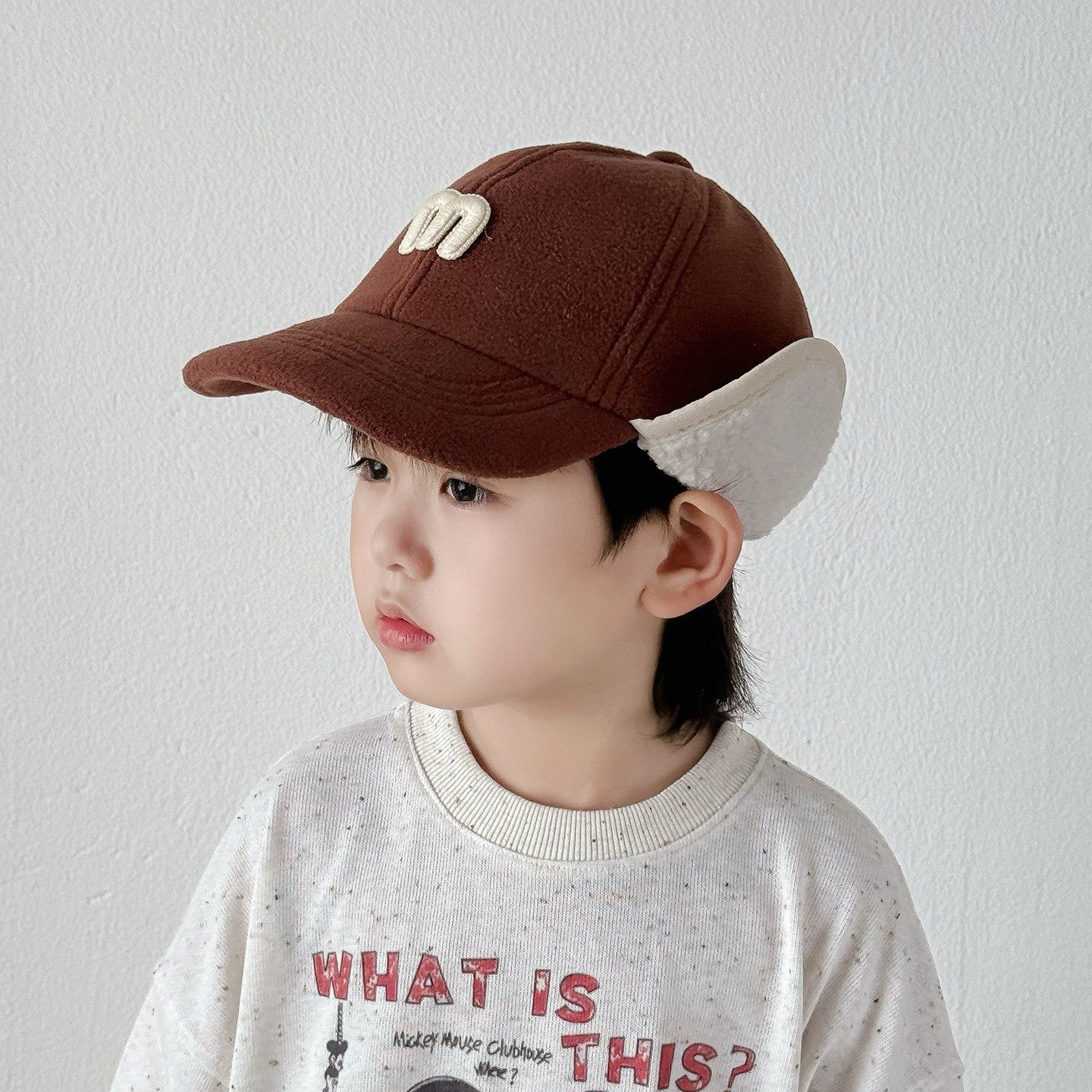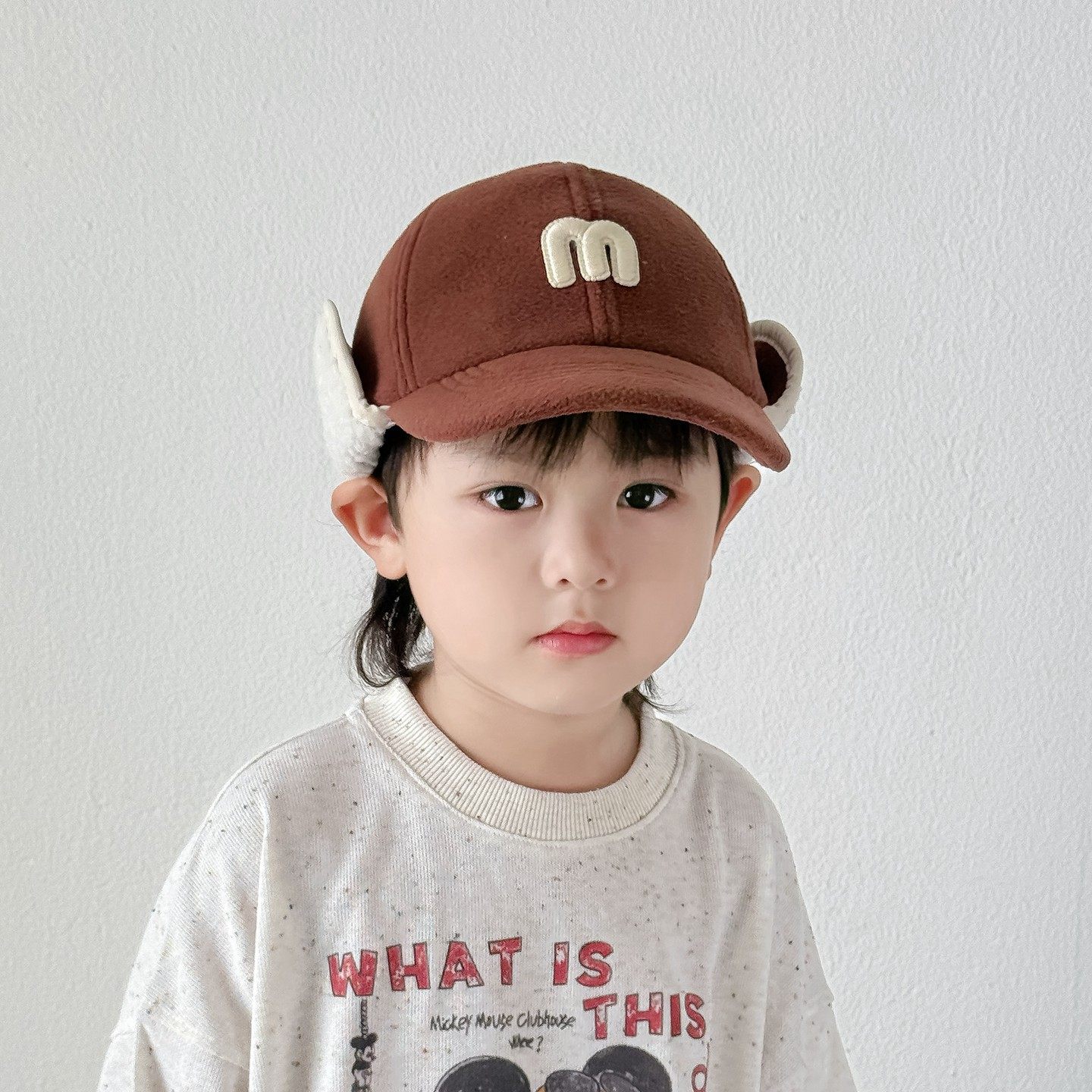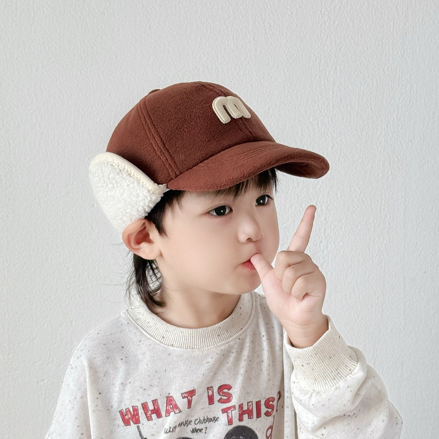 儿童帽子秋冬季时尚百搭男童鸭舌帽厚款保暖韩版女宝宝护耳棒球帽
