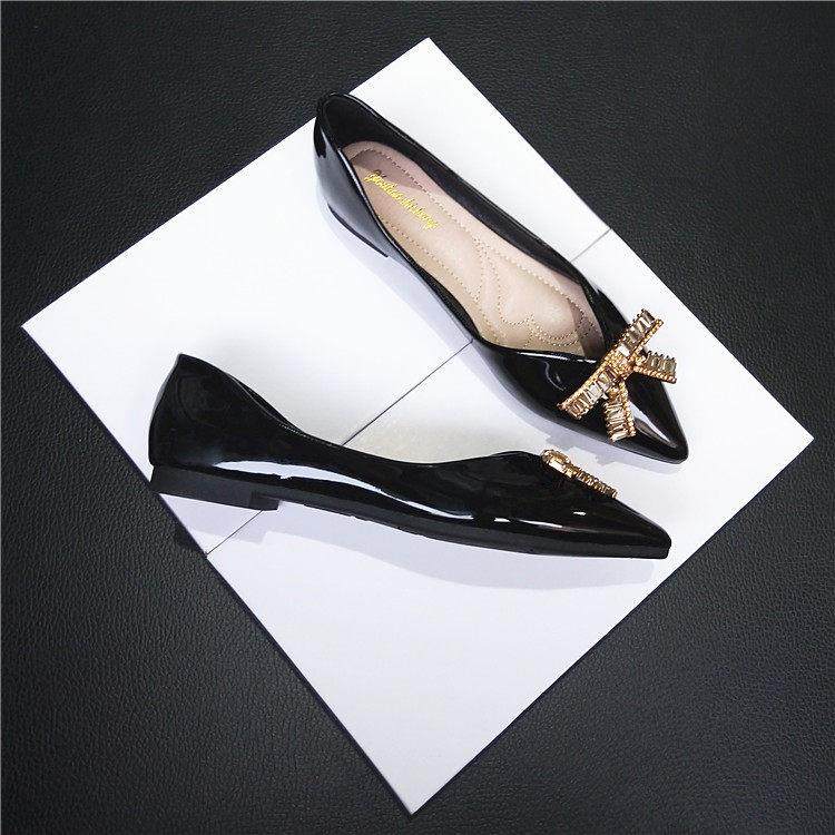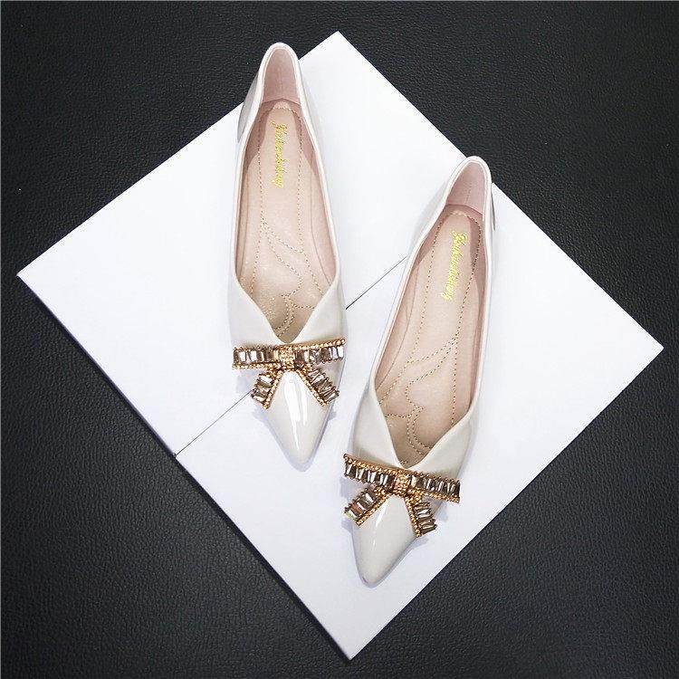 香港蝴蝶结平底鞋女浅口单鞋2025年秋冬新款尖头瓢鞋大码水钻婚鞋