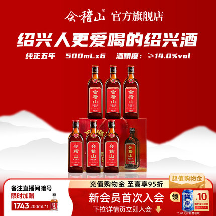 会稽山5年黄酒正宗绍兴黄酒老酒糯米花雕酒纯正五年500ml*6礼盒装