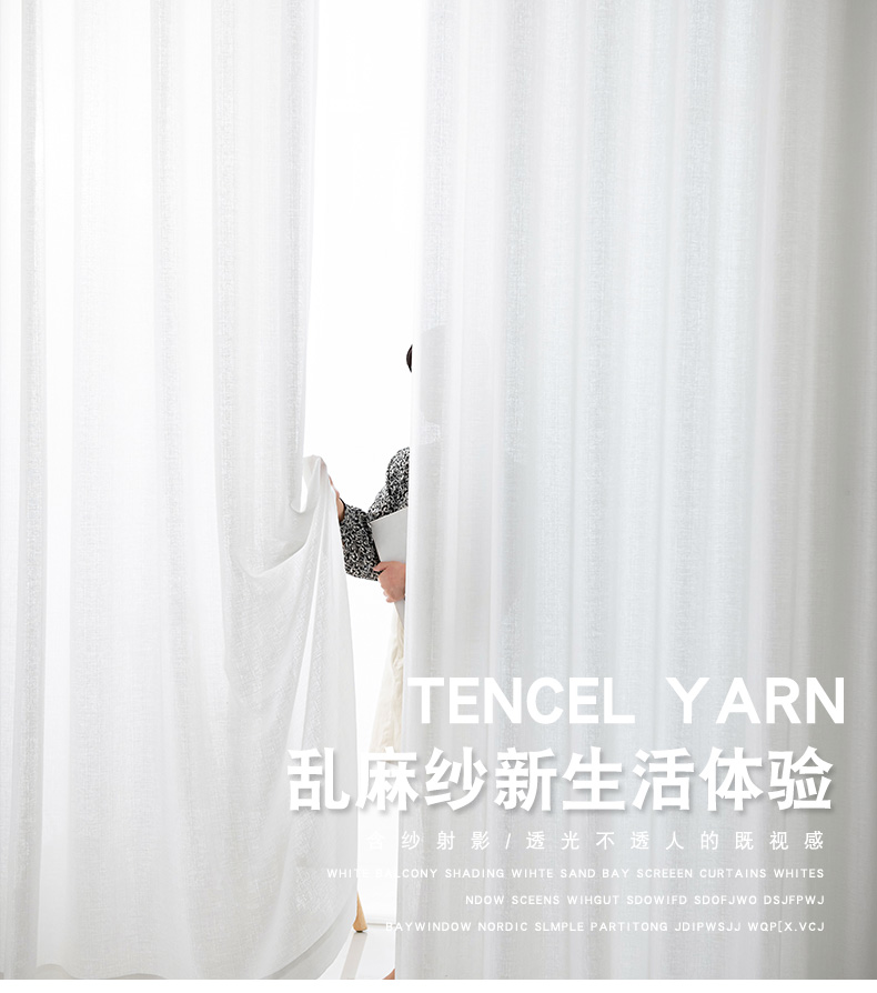 白纱窗帘透光不透人窗纱帘白色布料阳台半遮光沙飘窗北欧简约隔断