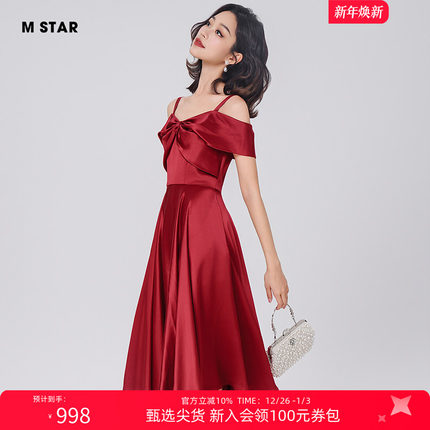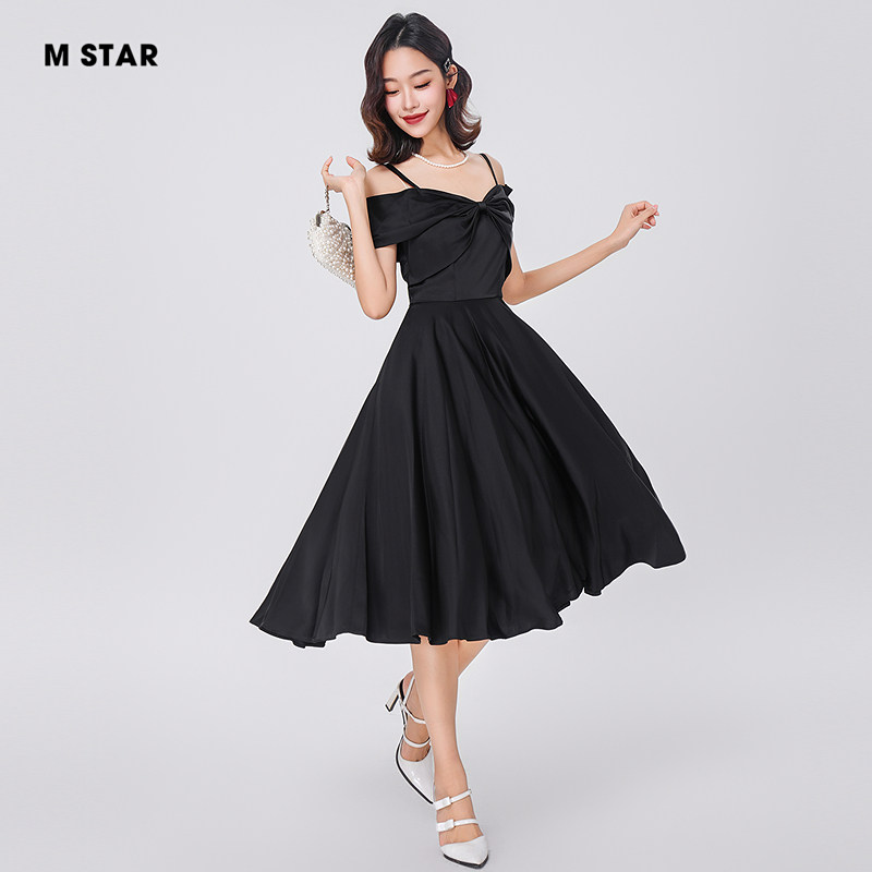 M STAR夏季新款法式气质醋酸缎感中长款吊带礼服连衣裙显瘦裙子女