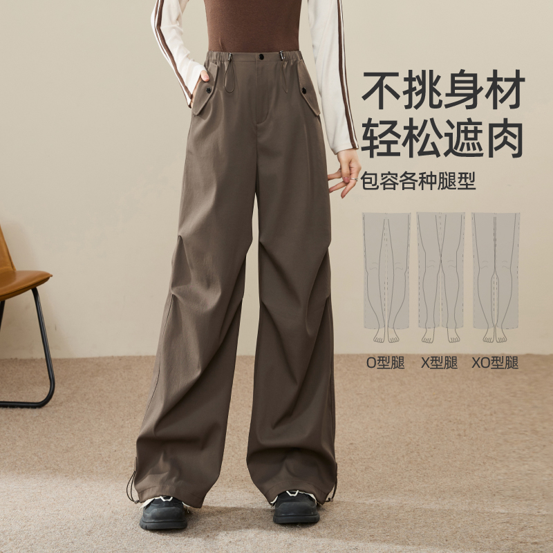 逸阳工装裤女2024年冬季新款高腰遮肉显瘦窄版阔腿休闲百搭伞兵裤