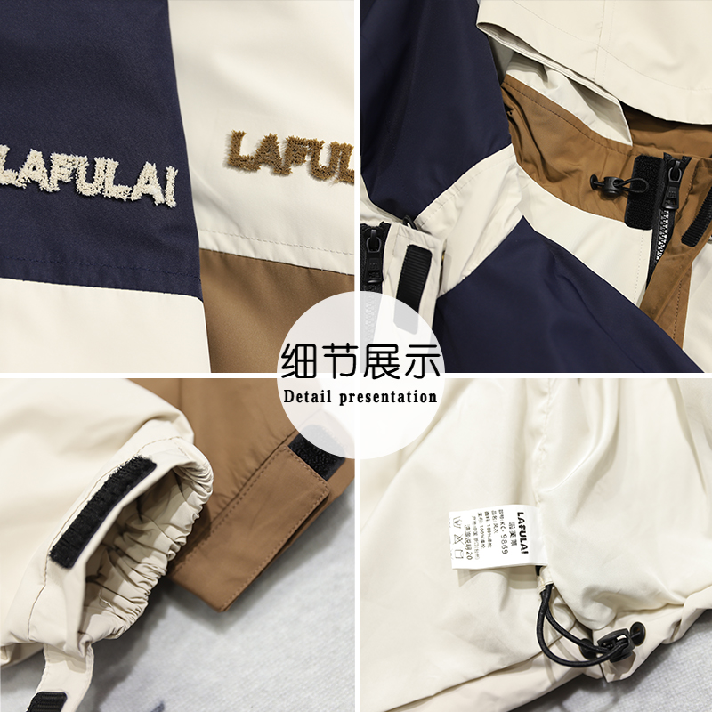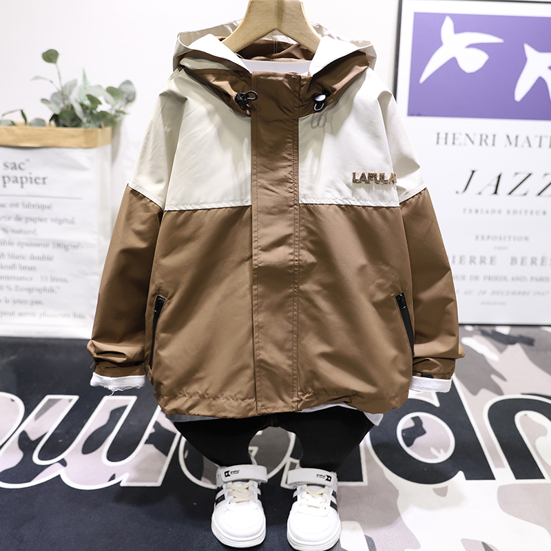 啦芙莱2024春款新男女中大童拼接连帽冲锋衣儿童夹克风衣外套9869