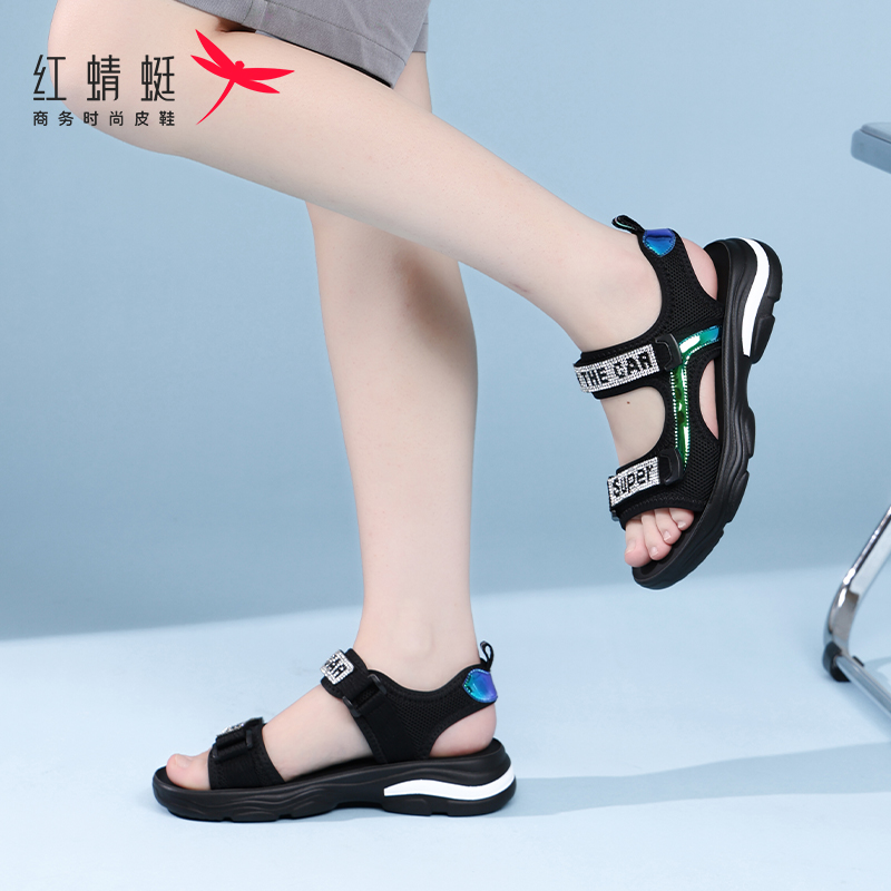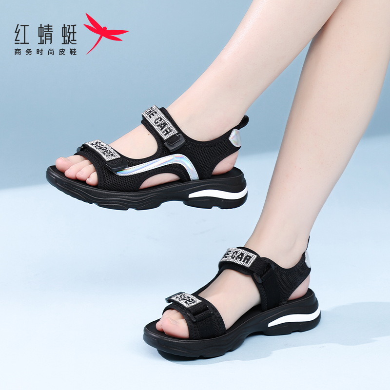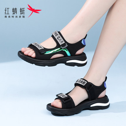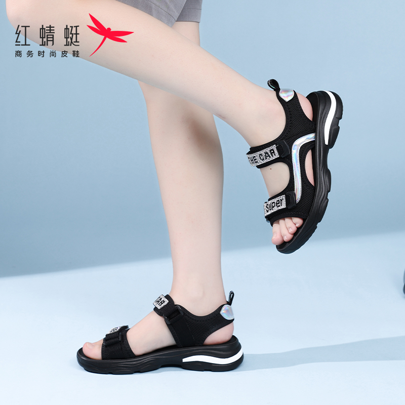红蜻蜓女鞋夏天厚底平底运动女士凉鞋女款2025新款夏季沙滩鞋学生