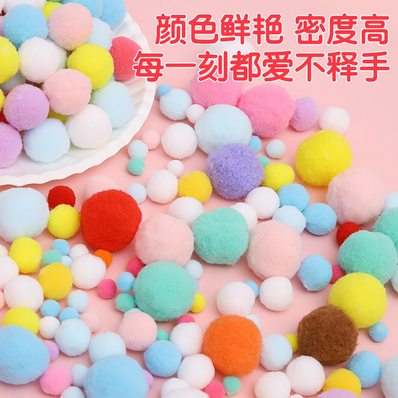 混装高弹彩色小毛球diy儿童创意手工金葱毛绒球大小混合饰品材料