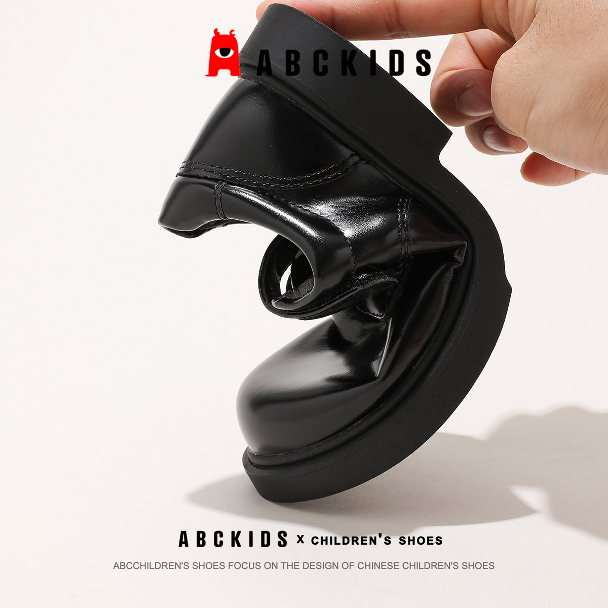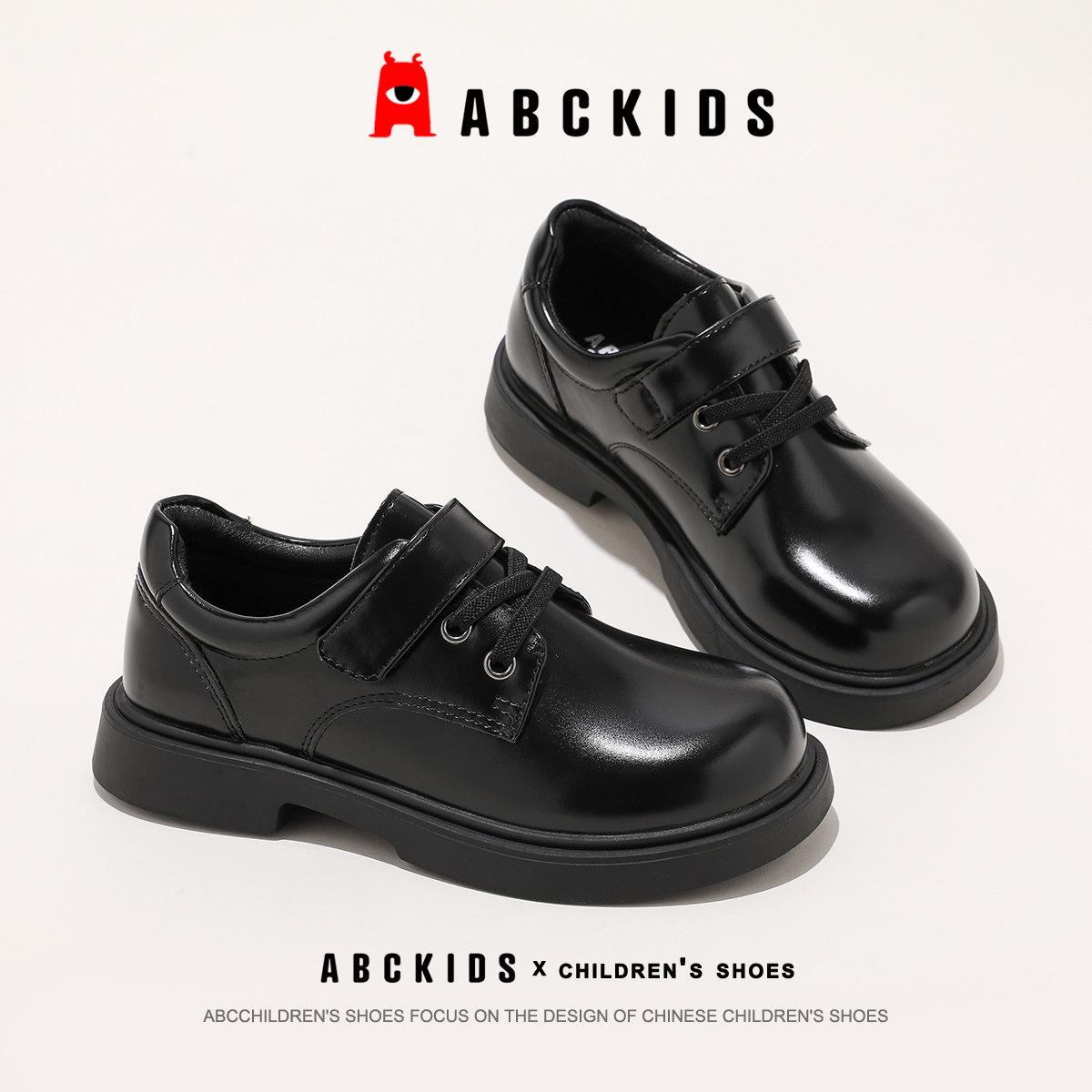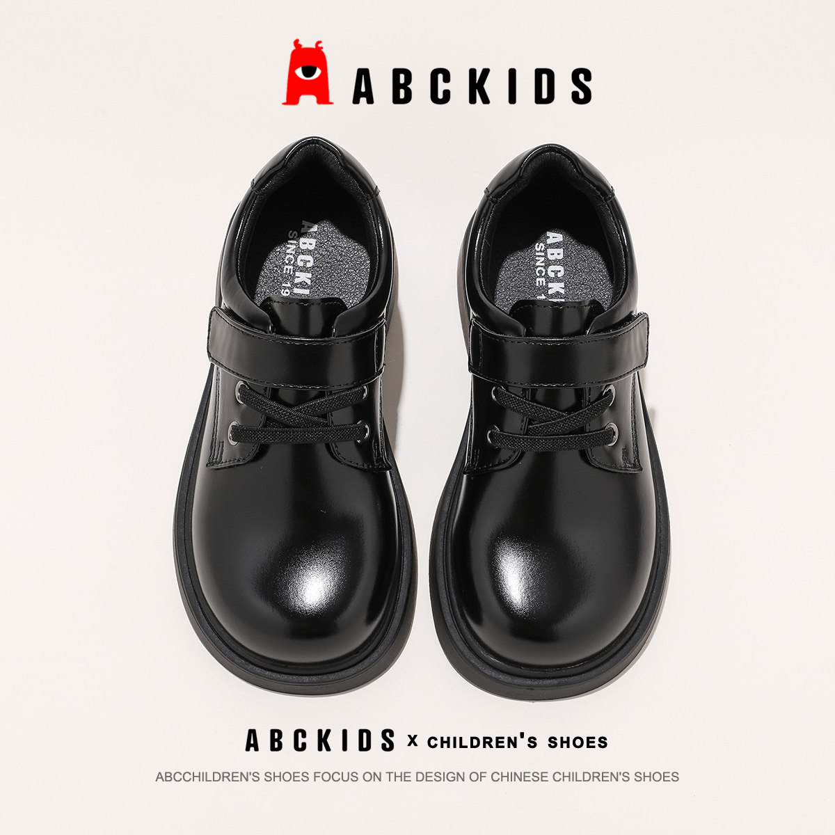 Abckids童鞋男童皮鞋春秋季新款儿童乐福鞋演出真皮黑色小皮鞋子