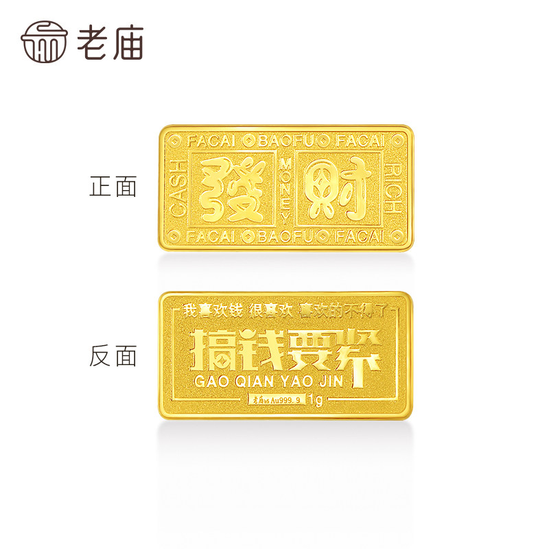 老庙黄金足金趣味小金条1g搞钱要紧发财投资工艺金条收藏送礼