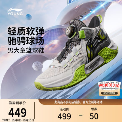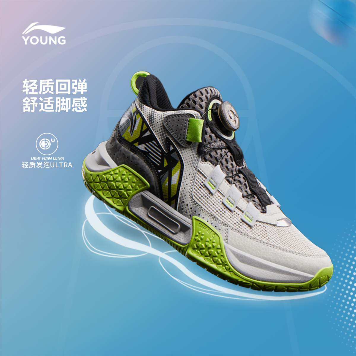 李宁童鞋篮球鞋男大童2025新款驰骋回弹快速简单穿脱圆头中帮童鞋