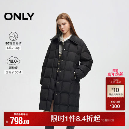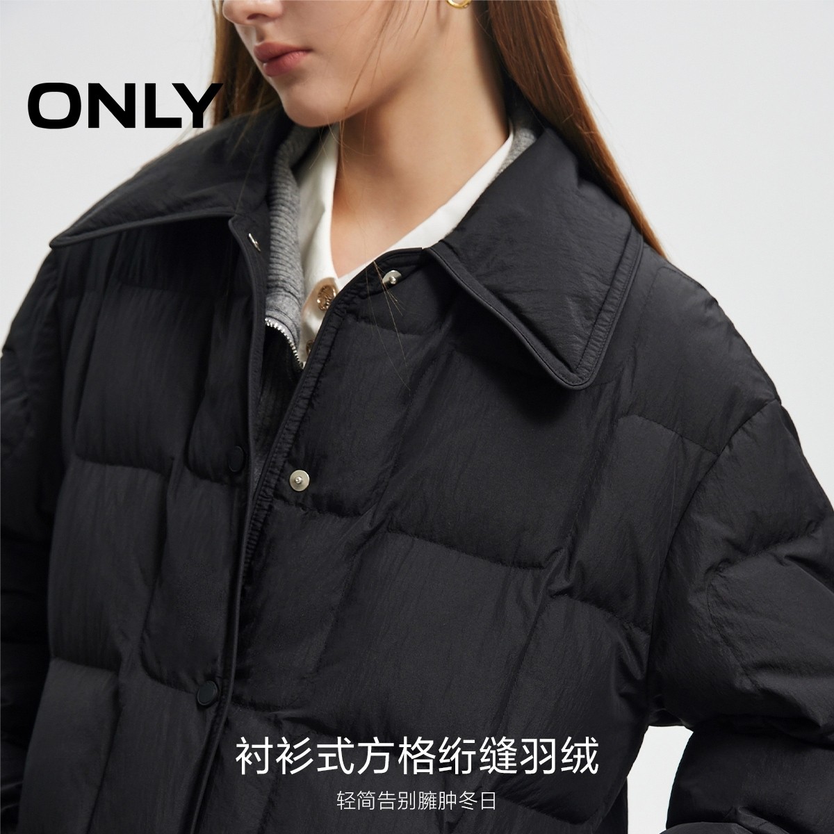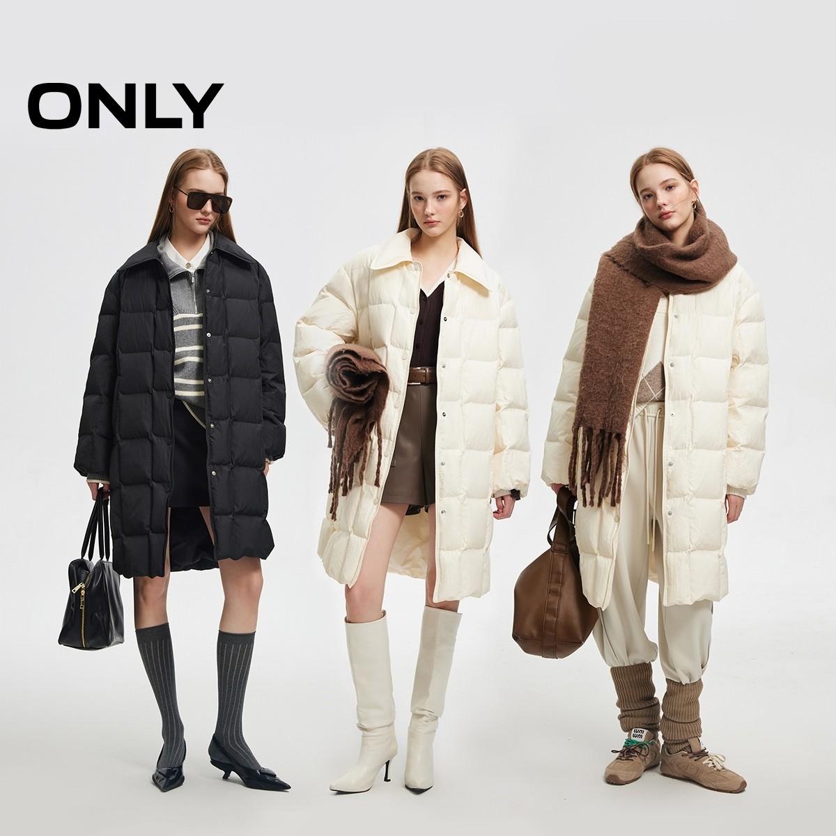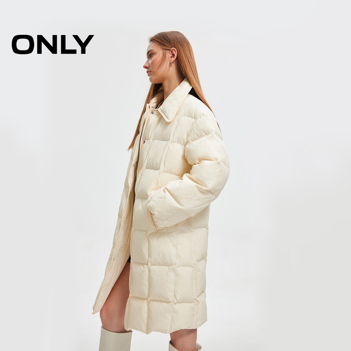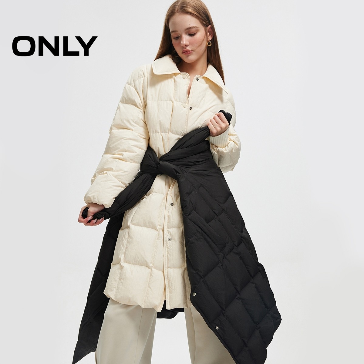 【ONLY奥莱】冬季新款90白鸭绒休闲翻领宽松中长款羽绒服女