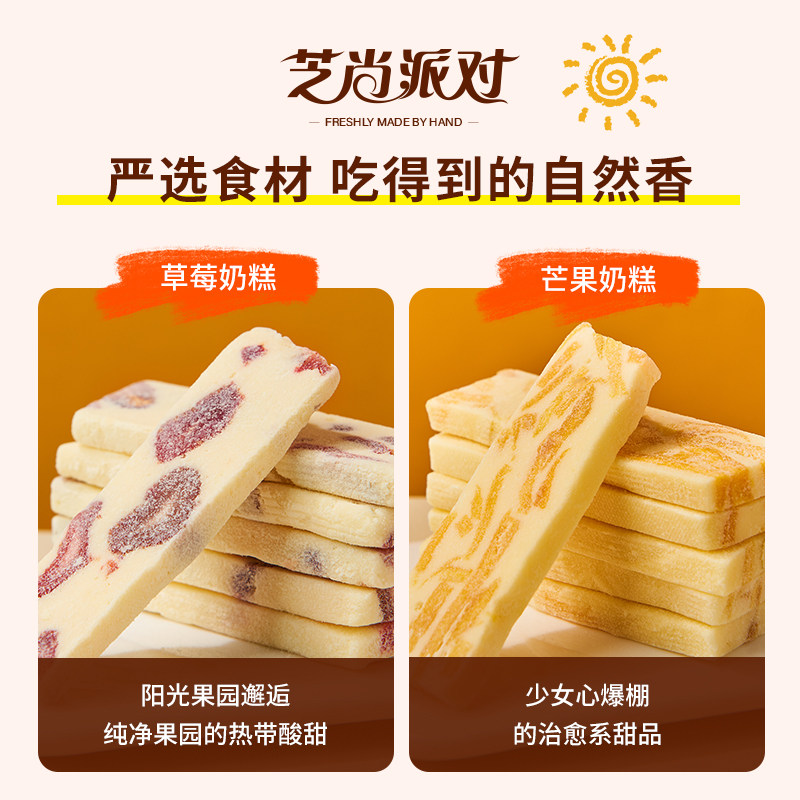 软糯香甜芒果草莓奶糕低甜不腻纯净配方无反式脂肪酸网红休闲零食