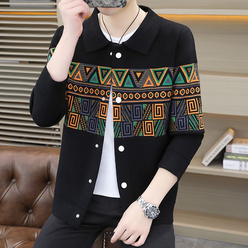 男士秋冬季潮流休闲针织衫上衣男青年潮牌时尚百搭修身毛衣开衫男