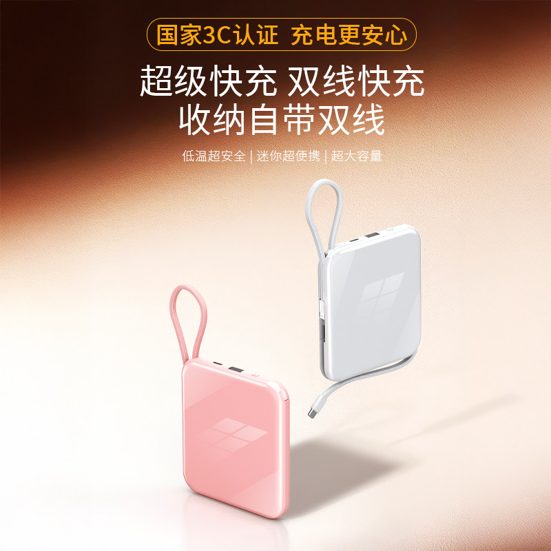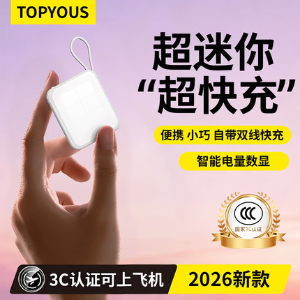 充电宝3c认证可上飞机充电宝自带线快充便携迷你移动电源超薄小巧适用于华为苹果专用官方正品旗舰店2026新款