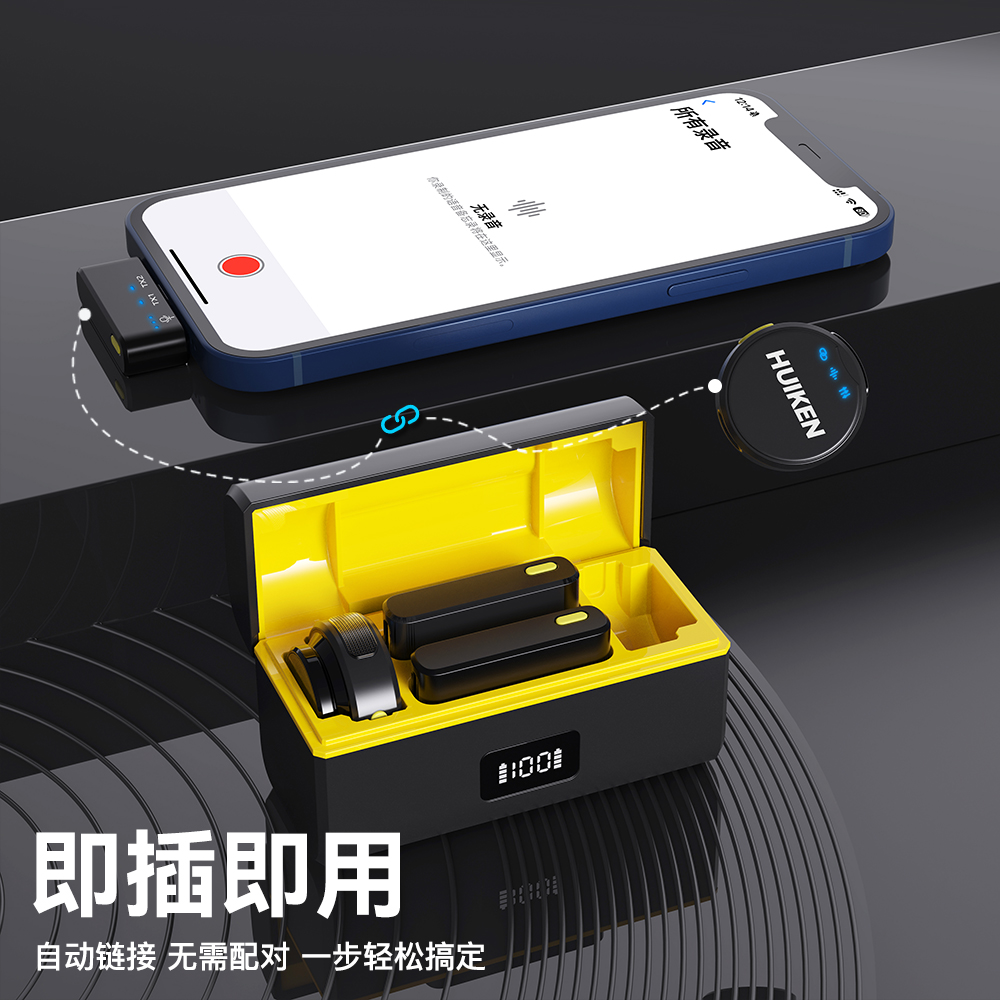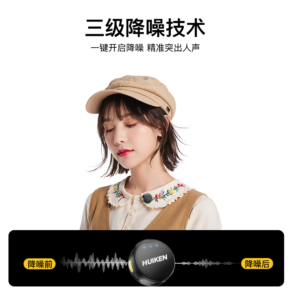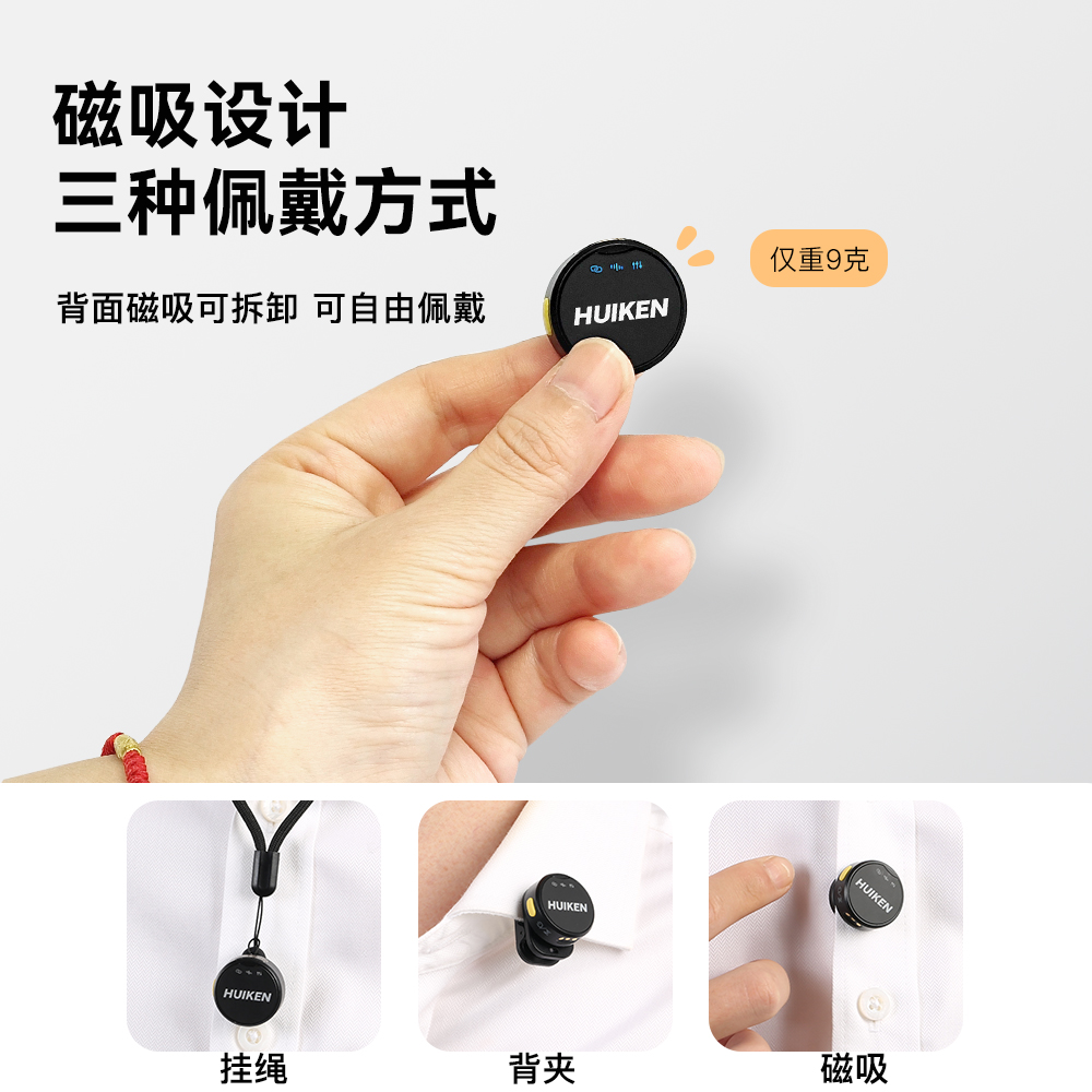 辉肯纽扣式无线直播麦克风迷你降噪收音领夹麦手机吃播录音一拖二