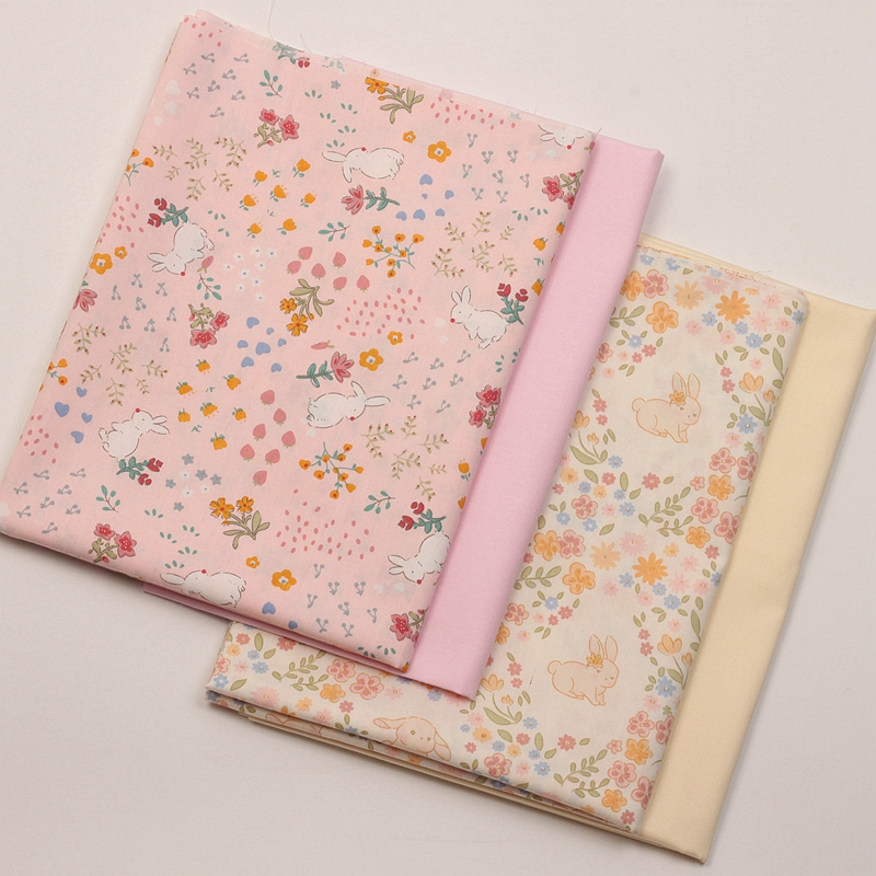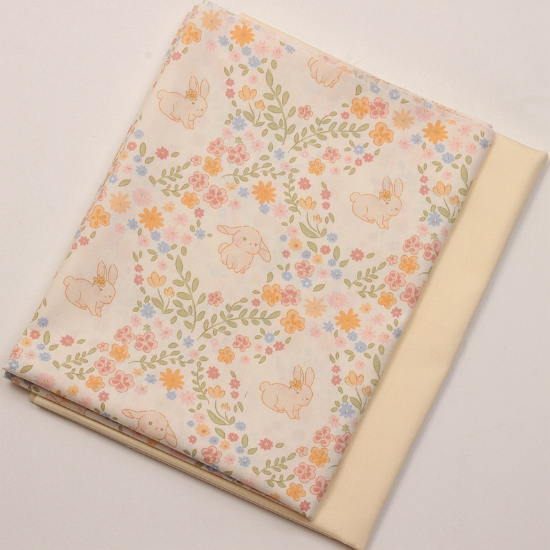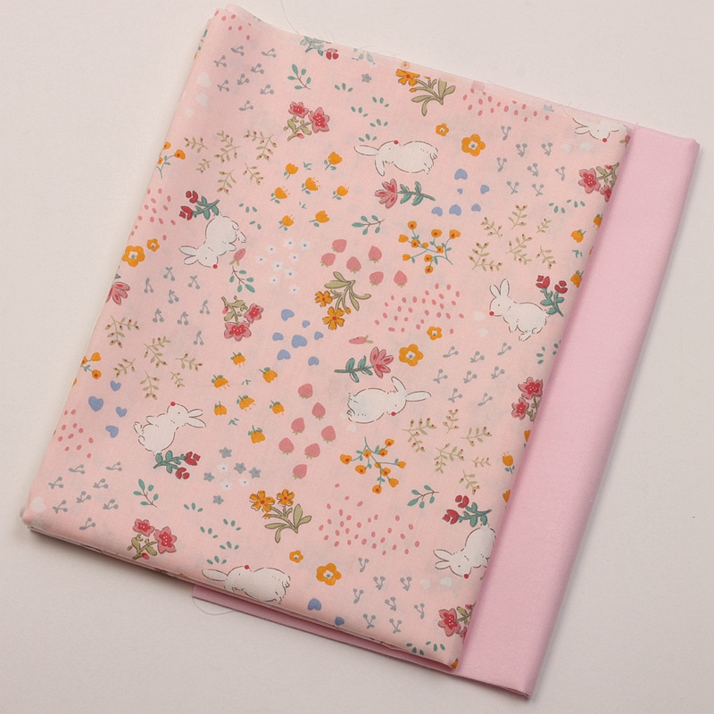 日系卡通草莓兔子印花纯棉布料1.6米幅宽40支斜纹布服装床品面料