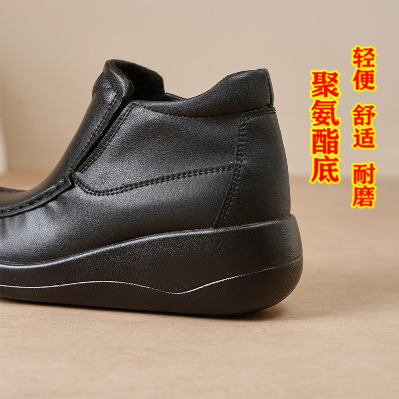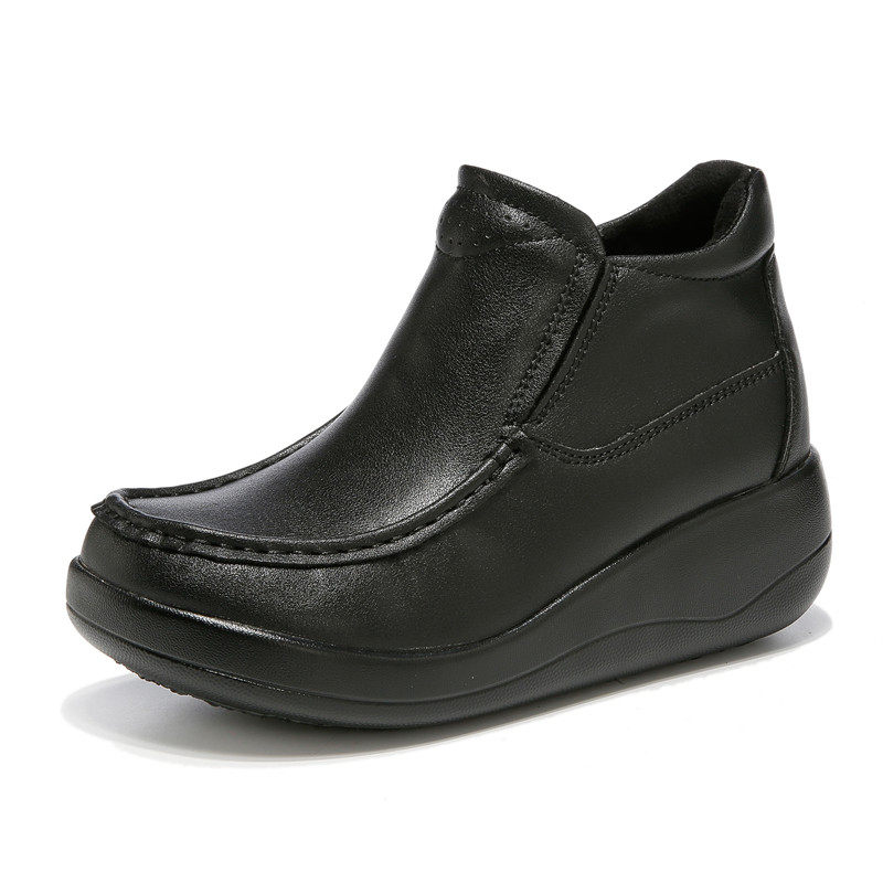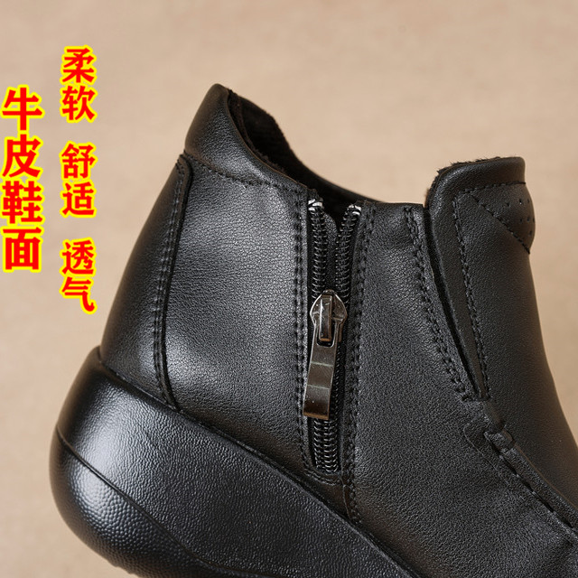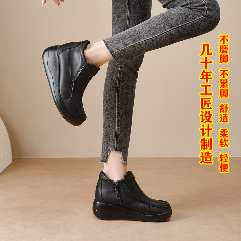 冬季加绒高帮短靴真皮女休闲厚底圆头女鞋大头鞋妈妈工作松糕棉鞋