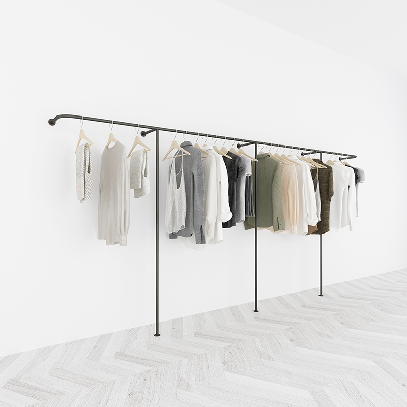 服装店架子上墙壁挂式金色展示架女装店铺专用银色衣服挂衣架定做