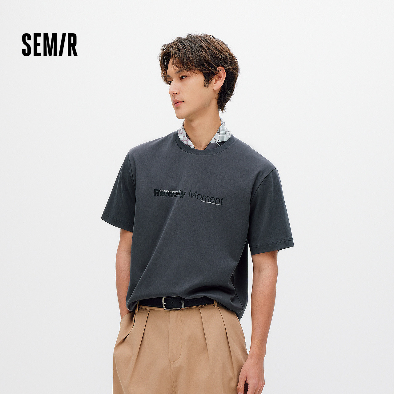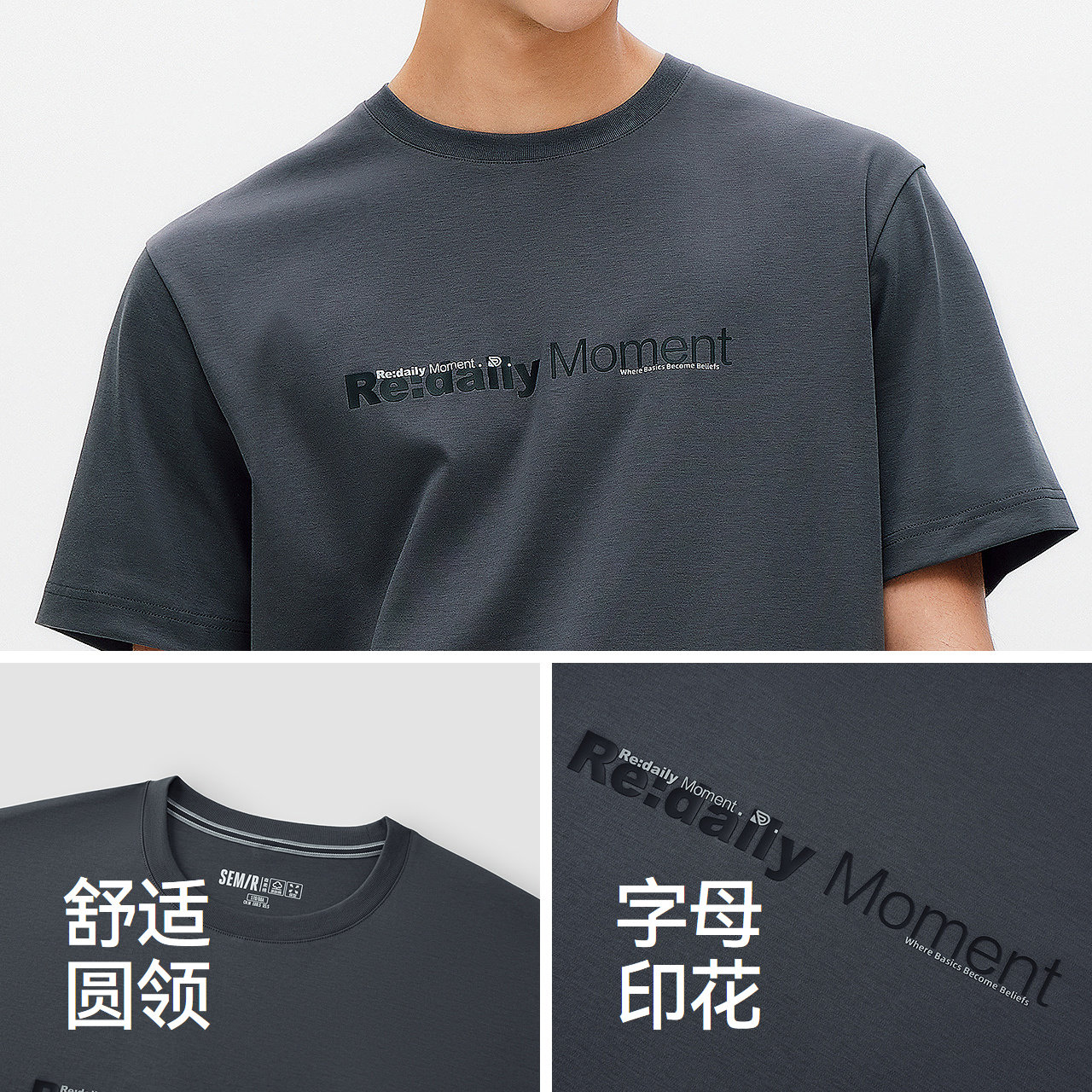 森马字母印花针织纯棉短袖T恤男