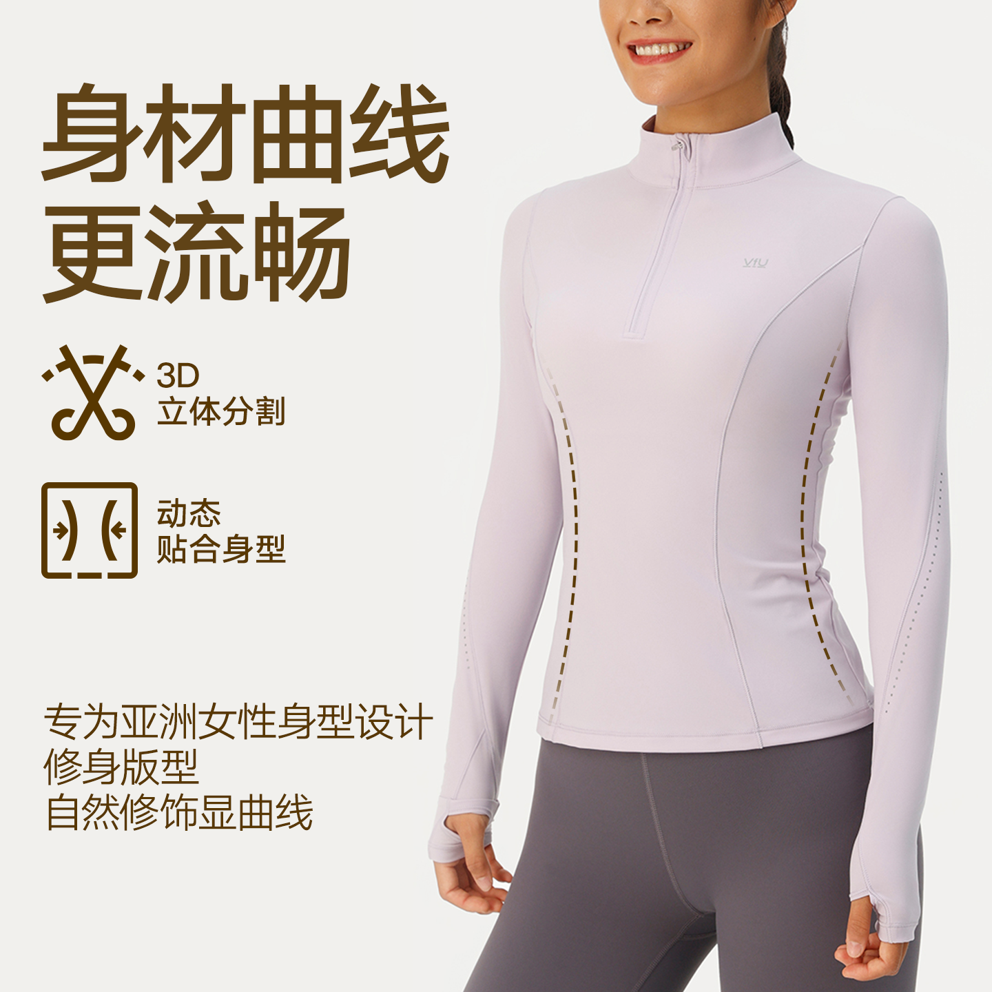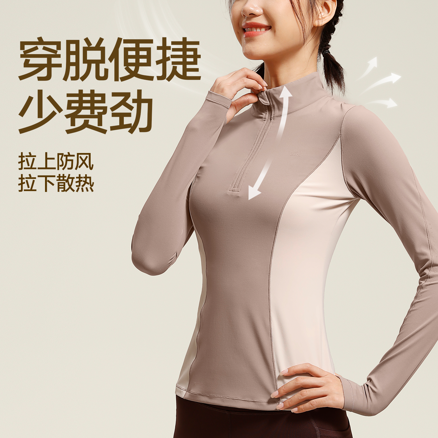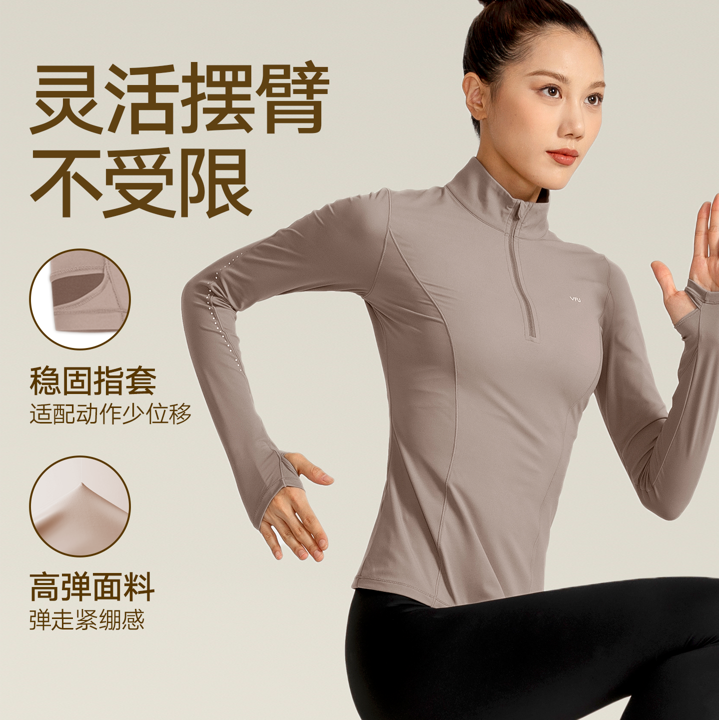 VfU跑步健身服长袖女半拉链