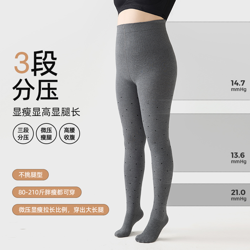 大码波点连裤袜女秋冬外穿美腿袜胖mm2025新款Miu系格雷灰打底裤
