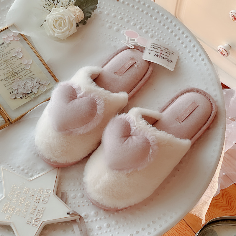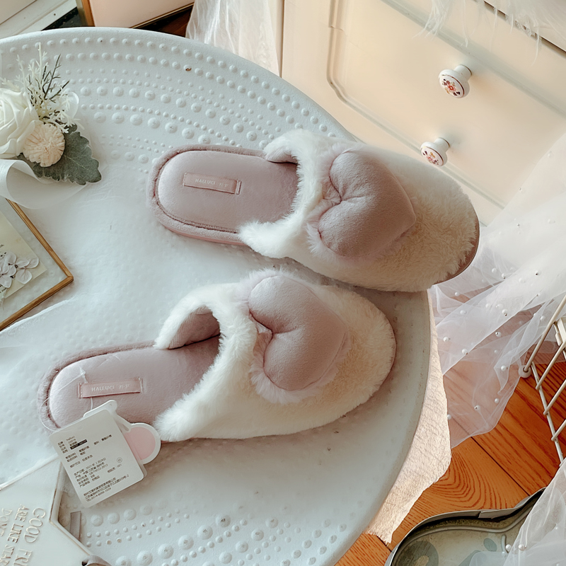 复古奶杏粉ins家居棉拖鞋女士厚底防滑室内毛绒包头秋冬季居家鞋