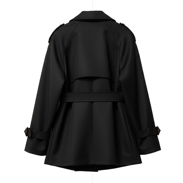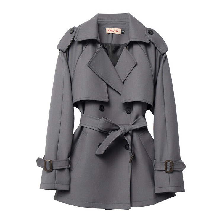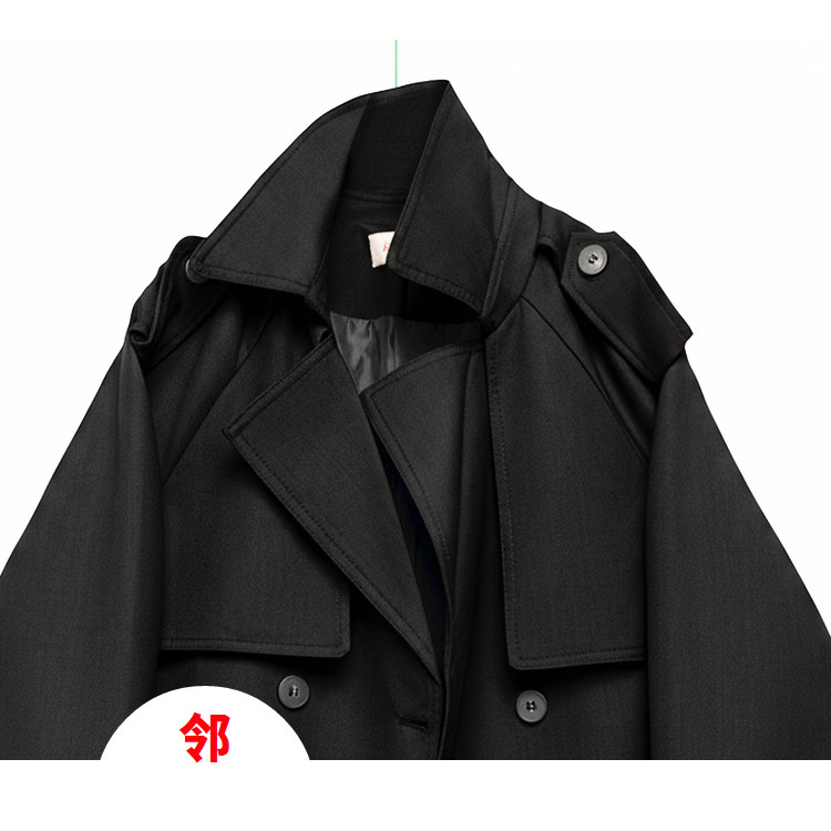 黑色经典廓形翻领收腰短款风衣女2026春秋新款小个子高级感外套女