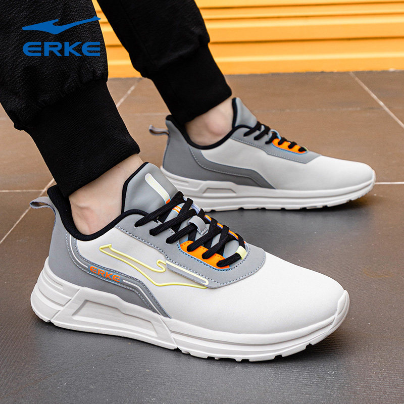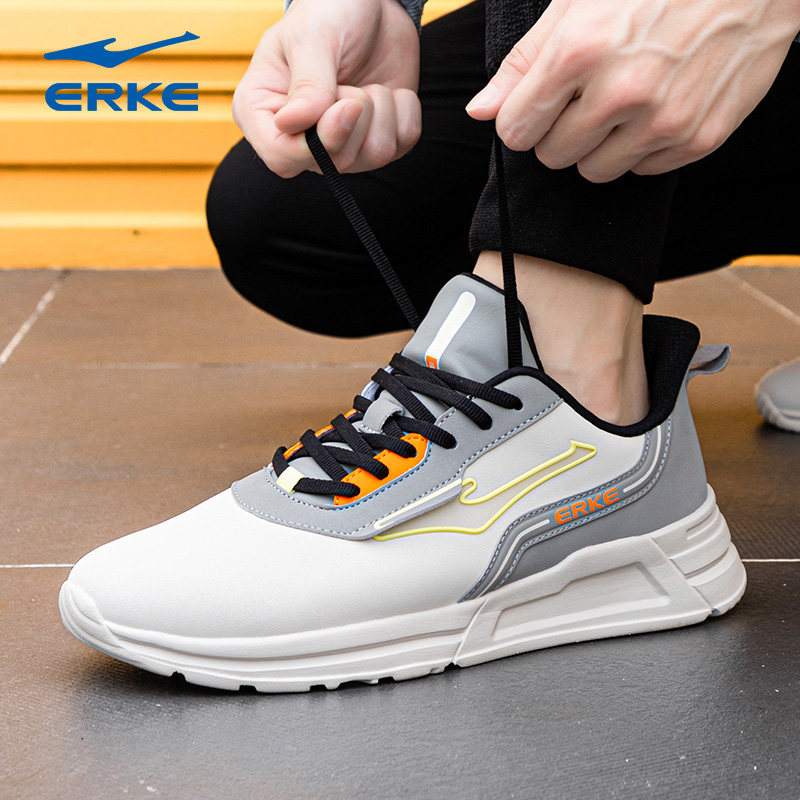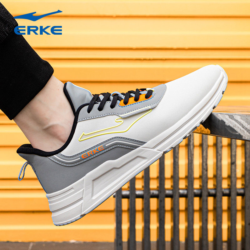 鸿星尔克男鞋轻便跑步鞋皮面防水休闲鞋子男士春季新款运动鞋男款