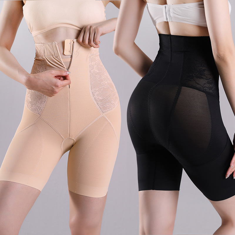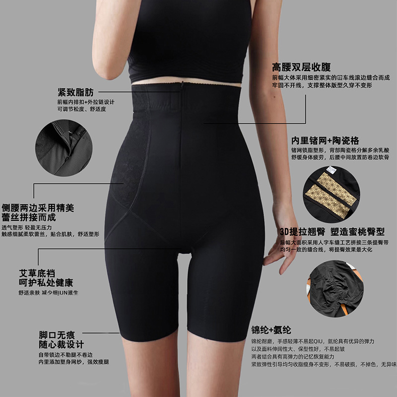 高腰拉链塑身美体裤双层束腰网纱紧致提臀女士骨盆矫正收腹内裤