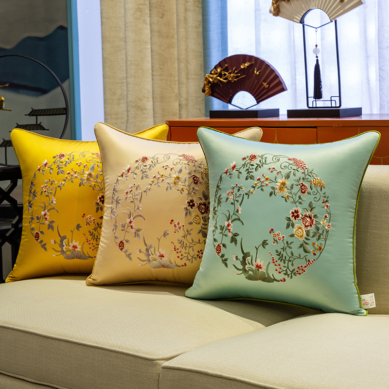 新中式刺绣靠垫抱枕中国风实木沙发靠枕绣花靠长方形腰靠枕套定制