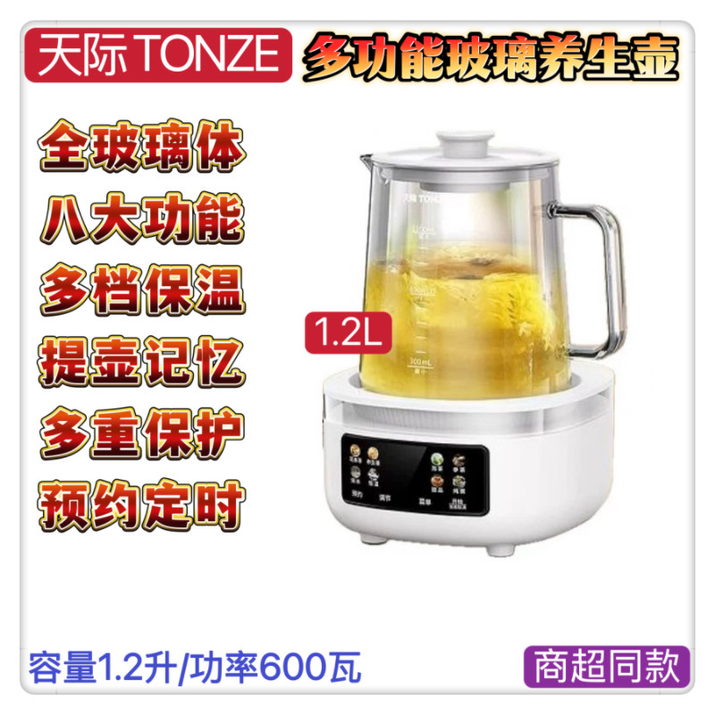 天际玻璃花茶养生壶全自动BB汤中药壶预约定时恒温保温1.8升配件