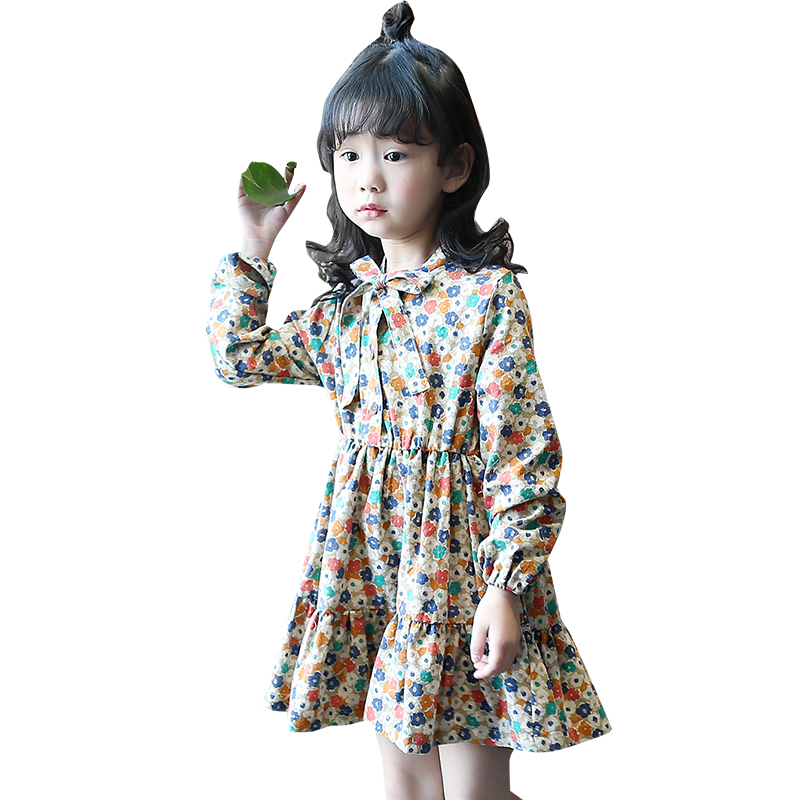 女童连衣裙2023新款春装长袖小童碎花裙中大童公主裙淑女半身裙子