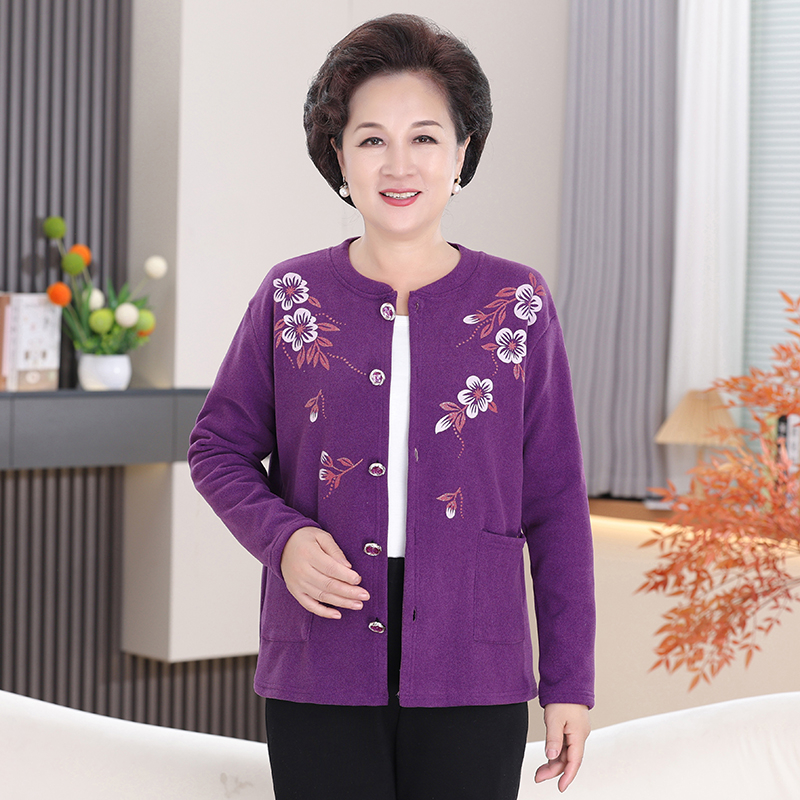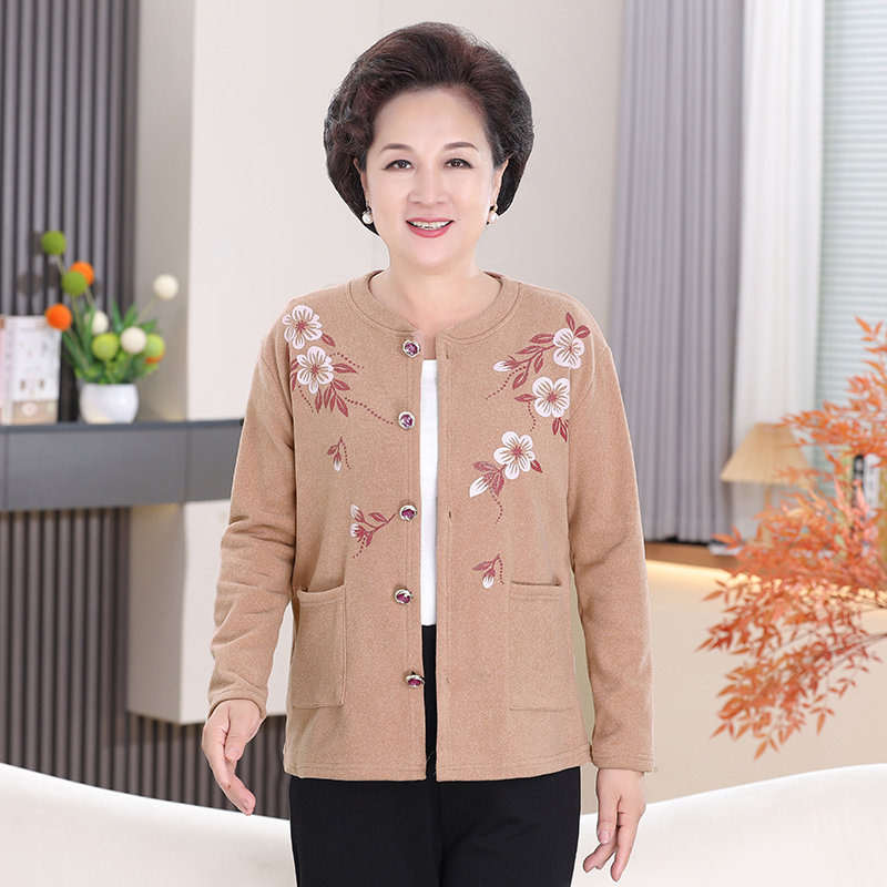 冬季妈妈开衫保暖内衣中老年人加绒加厚秋衣外套奶奶防寒打底衫