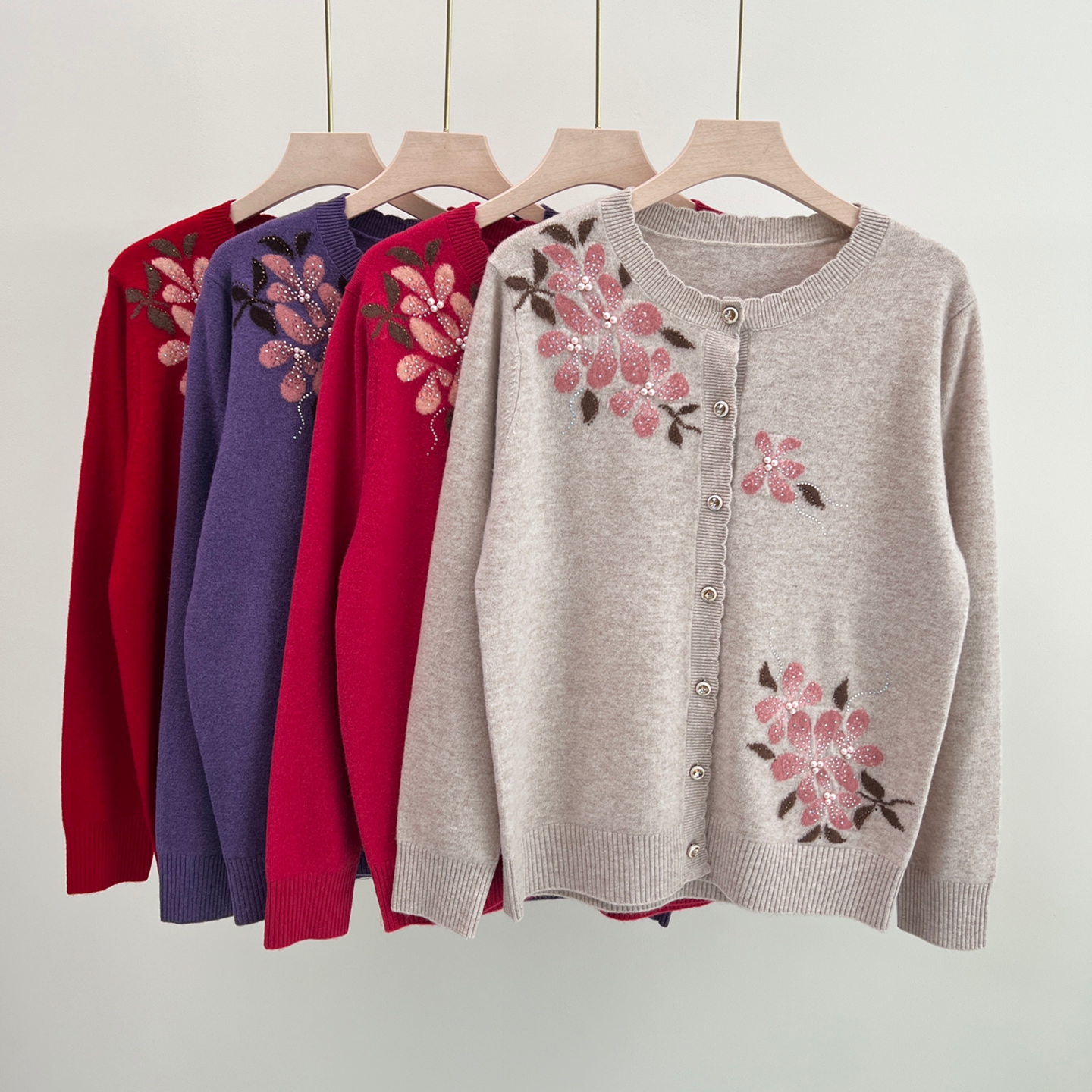 100%纯羊毛衫妈妈装秋冬针织开衫