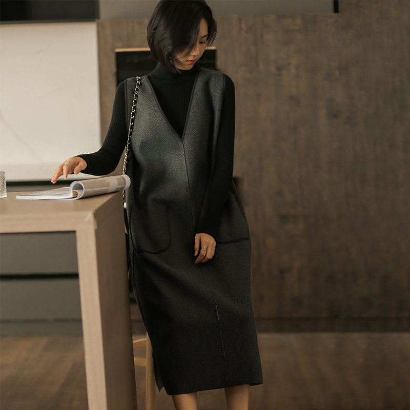 无谓打底背心裙2025秋冬毛呢女装长款马甲裙无袖气质呢子连衣裙女