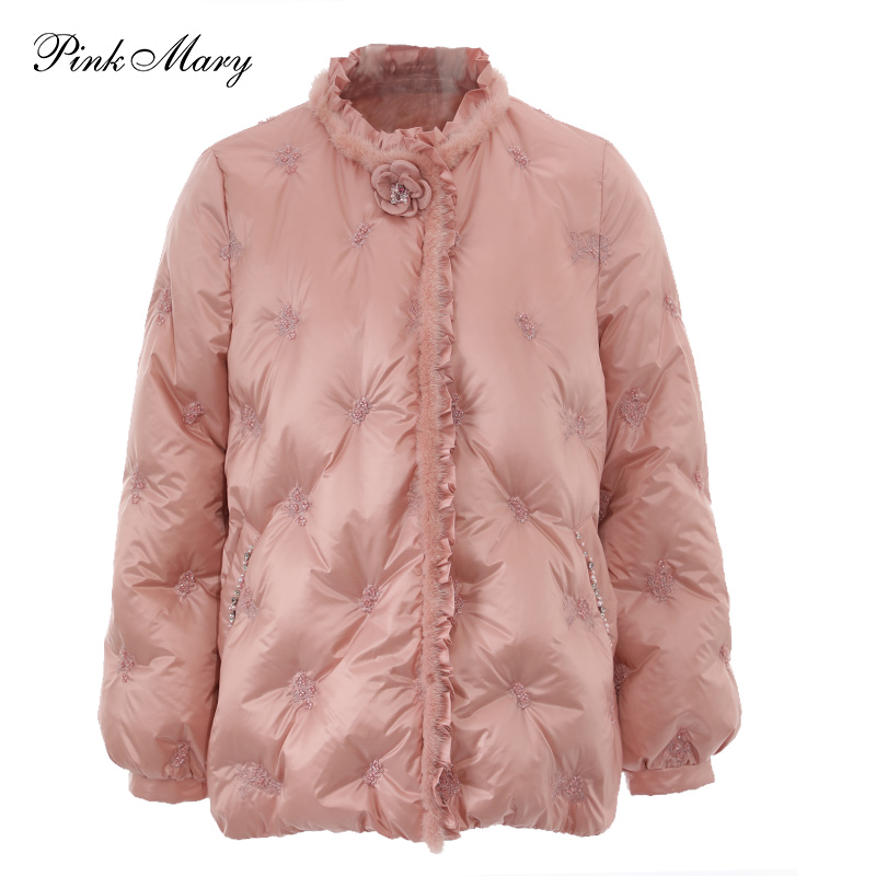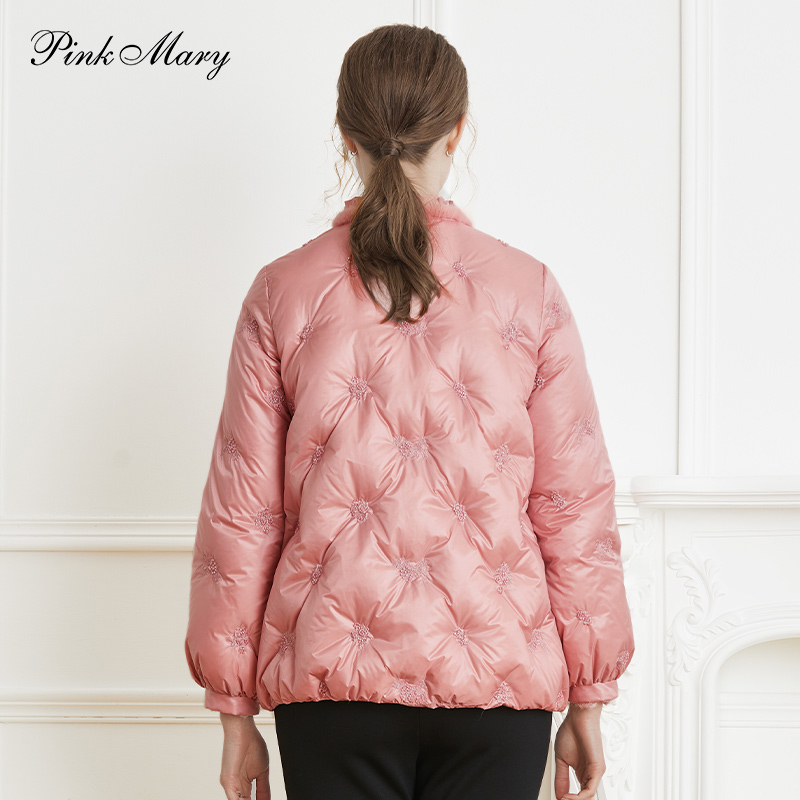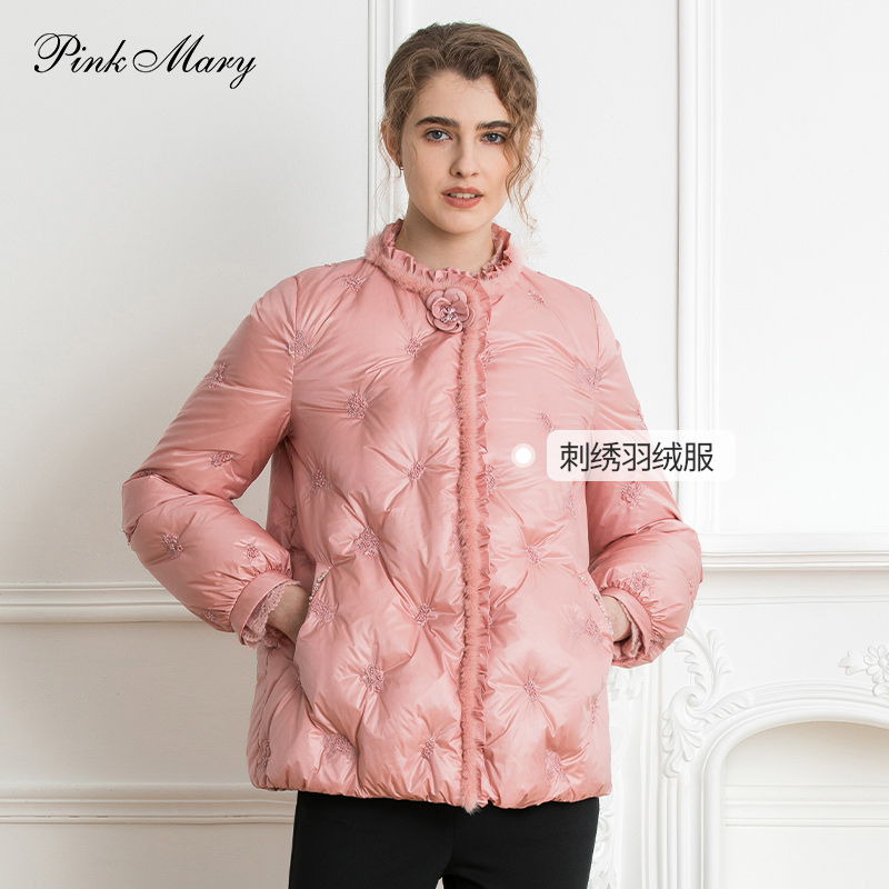 粉红玛琍鹅绒110g羽绒服女士冬季短款鹅绒刺绣外套PMAMW7602