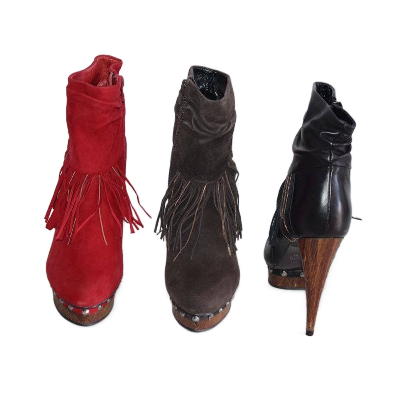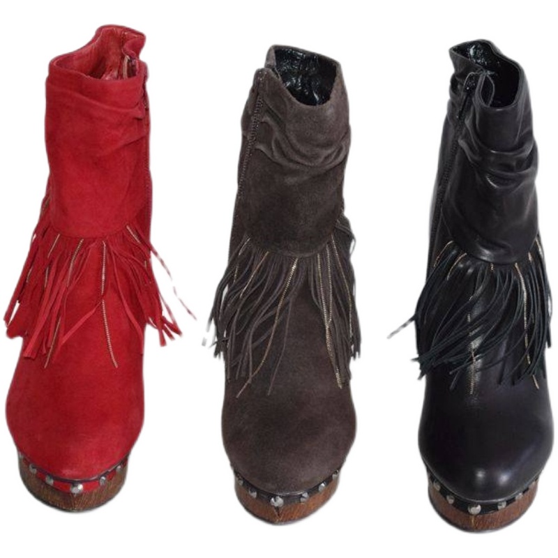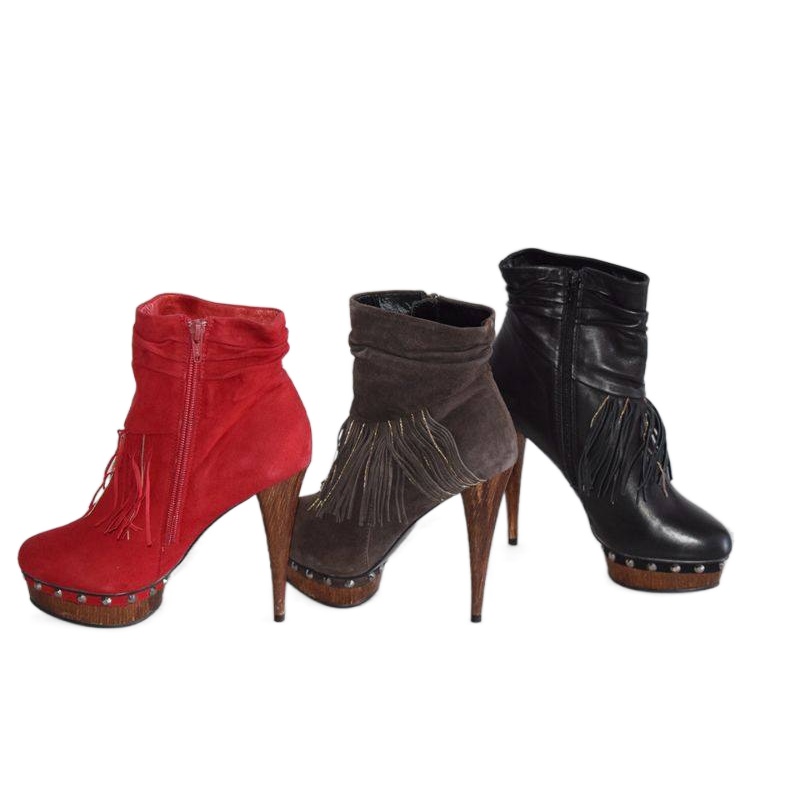 加厚底超高跟流苏靴侧拉链羊皮女靴内外全皮短筒靴子22773311