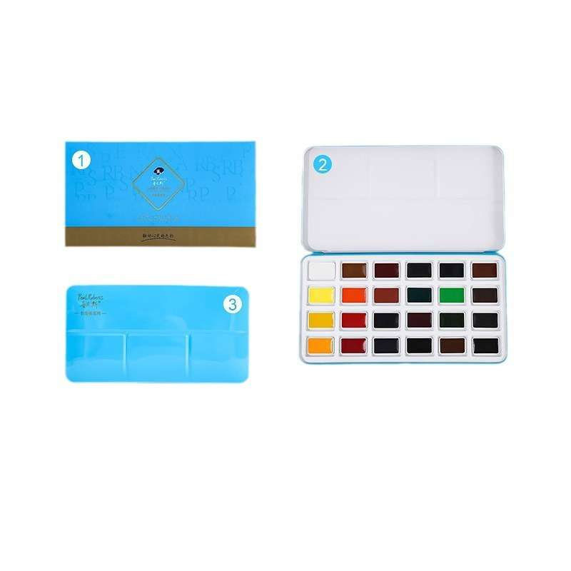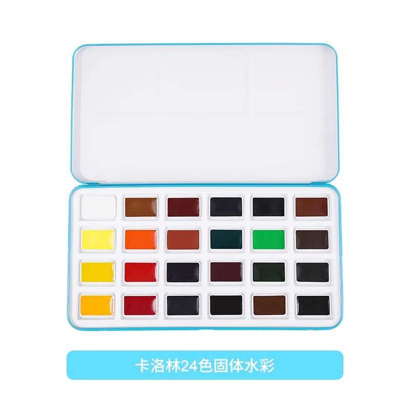 鲁本斯固体水彩颜料卡洛林学院级全块大磅入门24色美术初学者套装